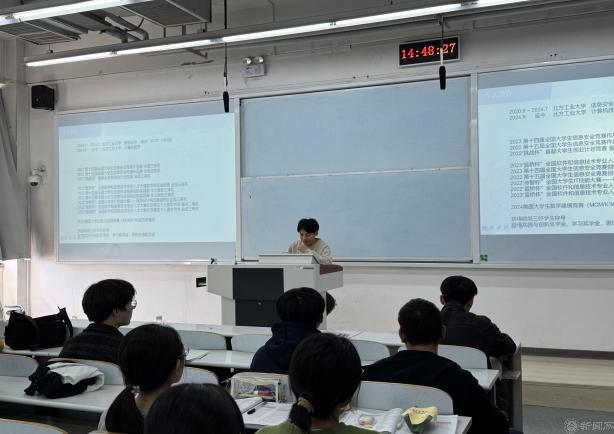计类专业分享会上,考研至本校的刘桁铭同学分享了自己在课程学习、竞赛、考研、就业方面的丰富经验,并着重介绍了科研竞赛的相关信息。保研至本校的刘苑同学详细讲述了保研的时间流程,提醒同学们要根据往年目标学校的夏令营、预推免的时间、做好初步的准备。并祝福同学们努力学习,拥有美好的未来。留学至新南威尔士大学的颜弈杰同学告诉同学们要不断提高自身的竞争力,并着重强调了科研和竞赛的重要性。他还向同学们推荐了关注赛事的网站和发表科研论文的博主,为同学们提供了宝贵的经验。另一位留学的刘祚先同学认为绩点和语言成绩是申请国外院校的重要因素。另外,一份充实的简历是申请环节中必不可少的一部分,提升简历的充实度要从项目和竞赛入手。留学杜克大学的李天昊同学通过视频方式介绍了自己从准备语言考试,到撰写申请文书,再到面试准备的全过程。他强调了时间管理的重要性,建议同学们提前规划,合理安排时间。参军入伍的李昱江同学介绍了他的军旅生涯以及各类征兵政策,他鼓励有志青年要积极投身国防,为国家的安全和发展贡献力量。