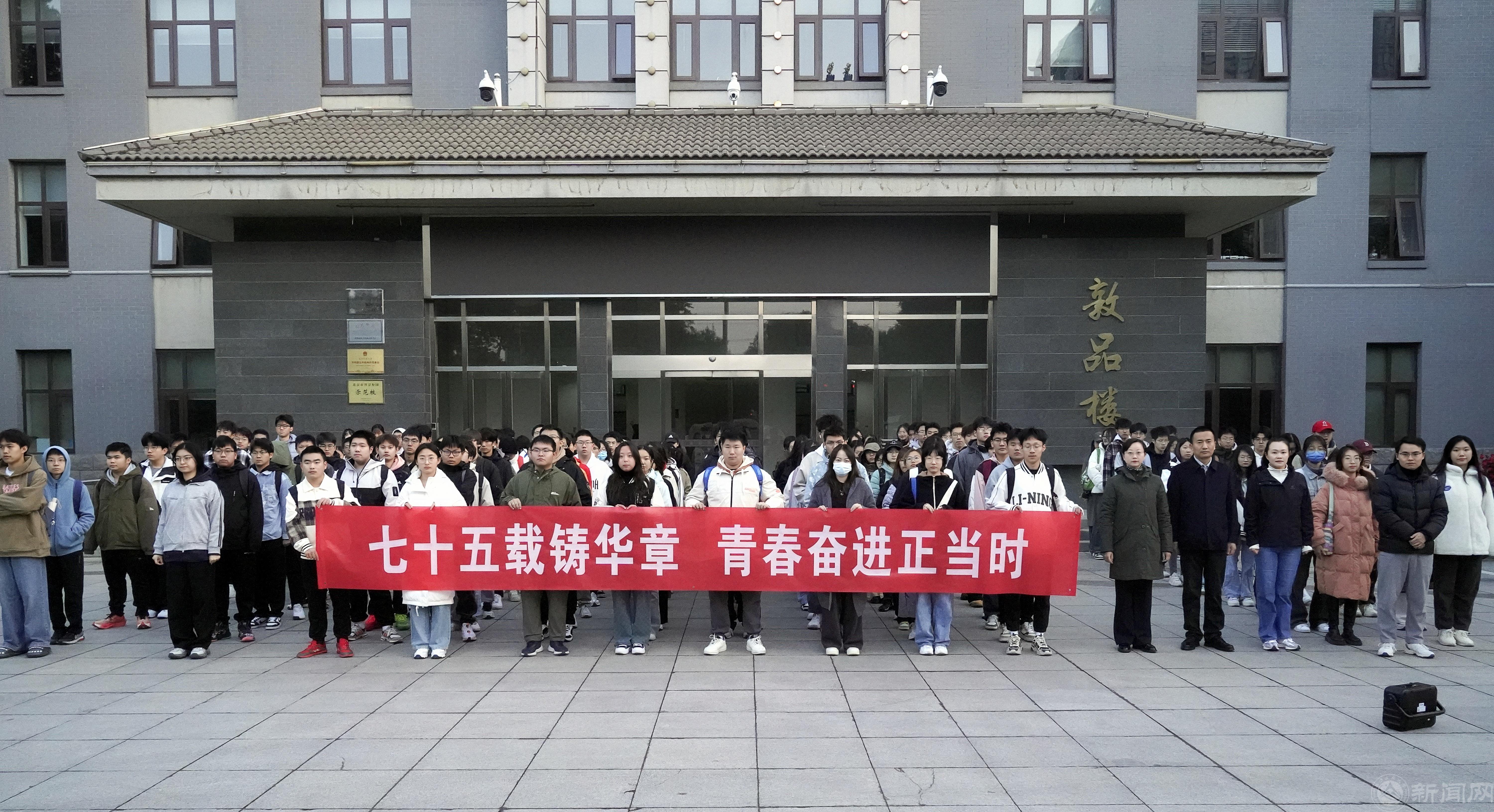 理学院党委书记杨嵩松对同学们提出三点期望:第一,铭记旗帜,传承先辈红色精神;第二,铭记成就,常怀奋斗之心和感恩之情;第三,铭记责任,争做有理想、敢担当、能吃苦、肯奋斗的新时代好青年。
