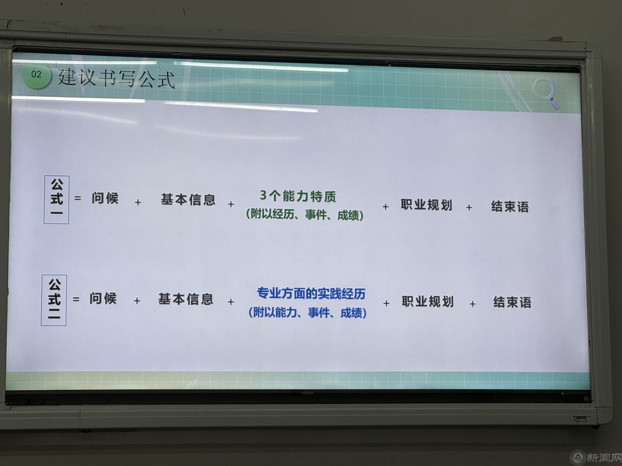 霍俊老师结合当前就业形势,深入分析了行业发展趋势和就业市场需求。并以求职规划与网申投递策略、校园招聘高分简历优化技巧、面试高频问题解答思路串讲三个方面逐一为学生讲解了求职技巧、一对一简历制作、面试策略等重要内容,让学生们对就业过程有了更清晰的认识。霍老师尤其强调简历的重要性:“好的简历是敲门砖,有效的自我介绍才能做到就业的‘开门红’”。在具体的方法上,投递简历要兼顾海投,精投两种方法。通过生动的案例和实用的建议,让学生们对就业过程有了更清晰的认识。
