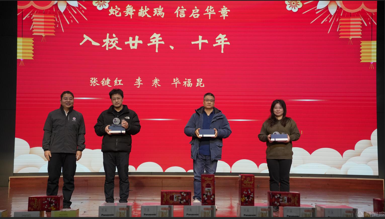 学院党委书记王伟宾宣读2024年表彰决定,对一年里在党建工作、教育教学、科学研究以及大学生思想政治工作中做出突出成绩的老师进行颁奖,并为入校满20年和10年的教师颁发纪念品。