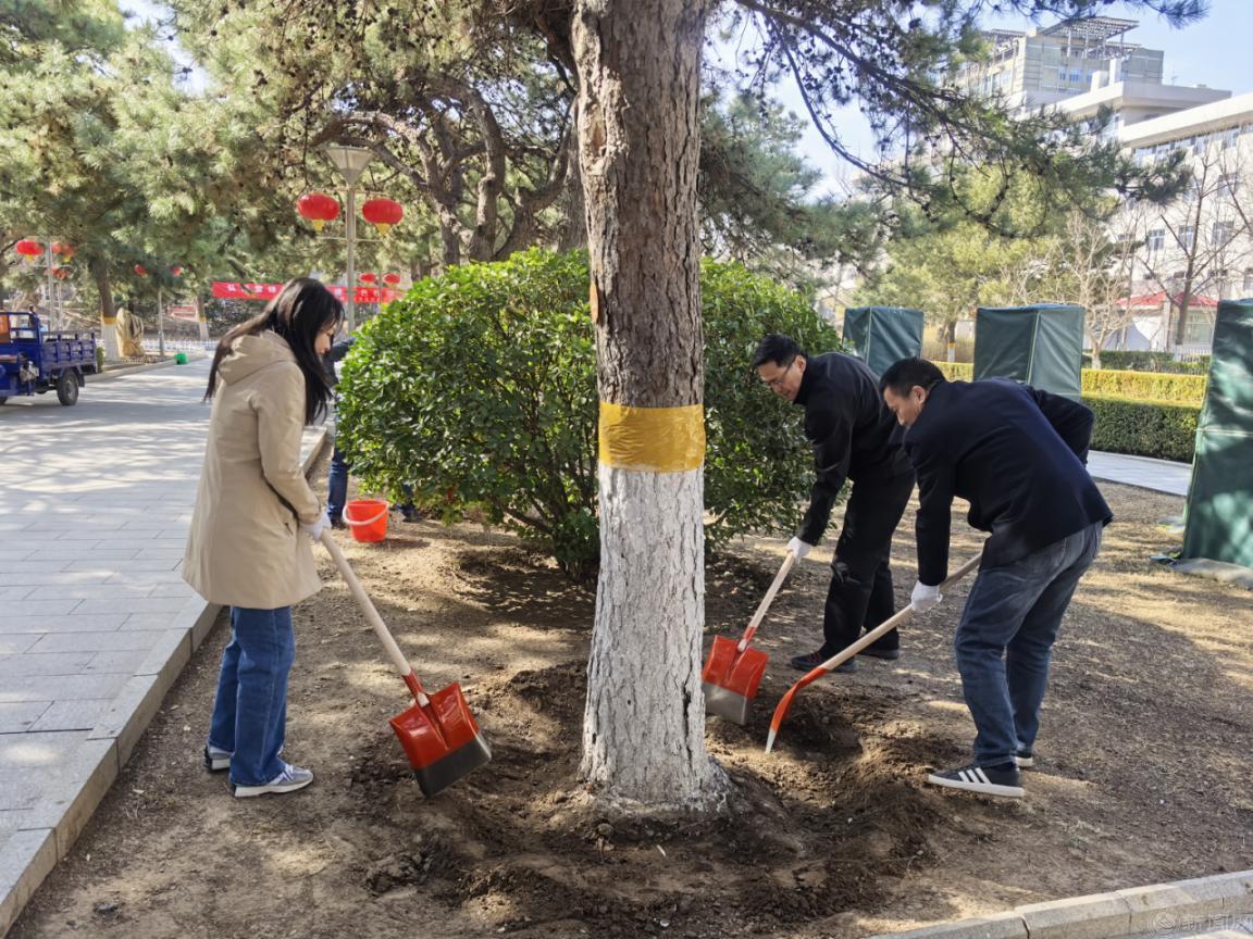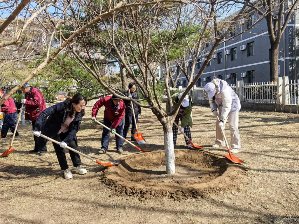 活动涵盖培树堰、浇春水、清落叶三大环节,每一项都围绕着校园环境的建设与保护。活动伊始,经验丰富的绿化师傅耐心细致地为大家讲解了培堰技巧、浇水方法及清落叶的重要性,确保每位参与者都能准确掌握操作要领。随后,党员同志带领学子们迅速集结,手握铁锹、锄头、耙子、水桶等工具,全身心投入到紧张而有序的劳动中。从松土培堰到浇水施肥、再到清理落叶和病原菌,每一步都凝聚着大家的辛勤汗水与智慧结晶。经过一个多小时的努力,毓秀园焕然一新,20余株大树的树堰整齐划一,为即将到来的春水浇灌奠定了坚实基础。