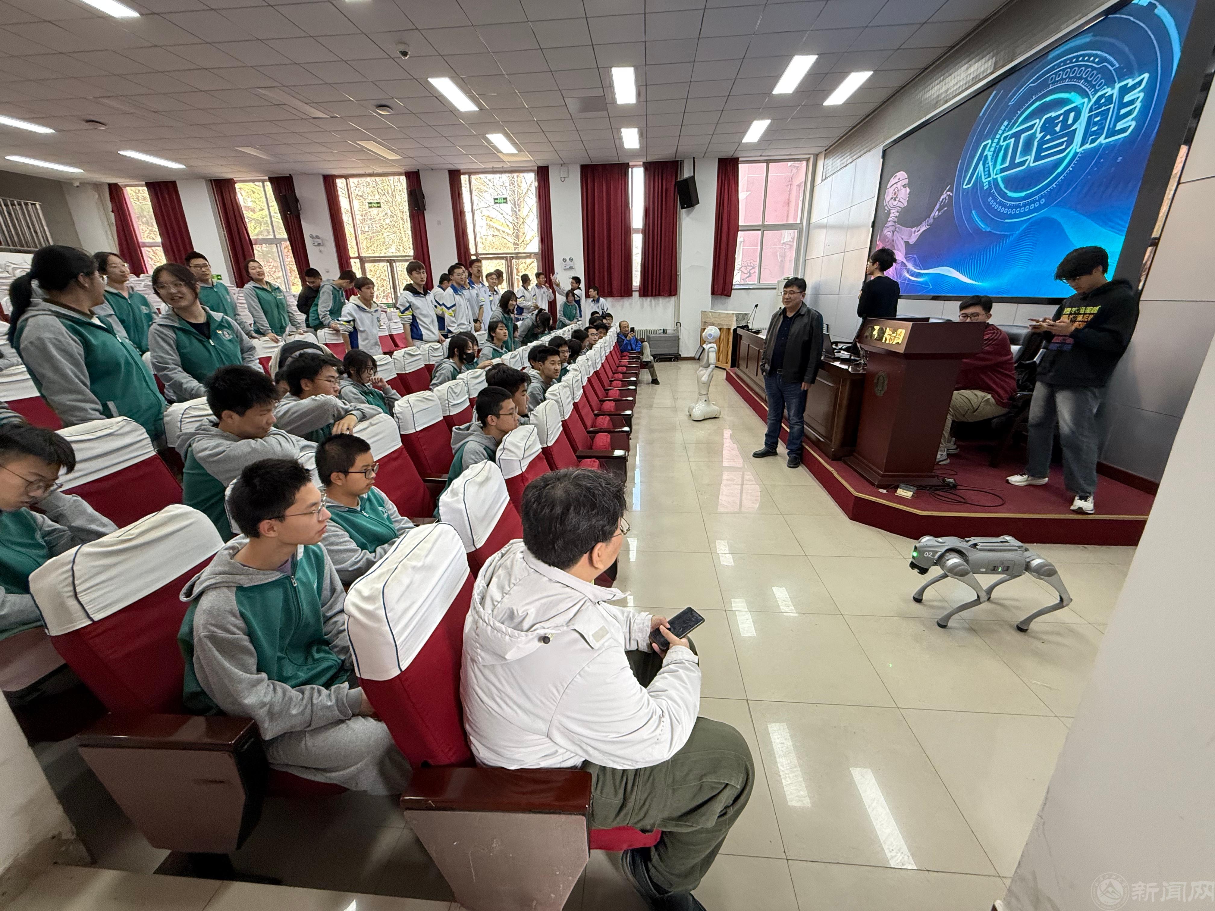 活动中,由智能机器人“小毓”作为“宣讲员”,向北京市第十中学高中部的同学们介绍了世界杯官网办学历史、办学特色、招生政策以及信息学院及人工智能专业情况,并为同学们做了人工智能的科普报告。之后“小毓”还表演了舞蹈、开放式对话及“AI猜年龄”等才艺。随后,还为同学们演示了“四足机器狗”这款新颖的“科技萌宠”。智能机器人“小毓”及机器狗的诸多功能都由人工智能专业本科生研发,她可以通过基于计算机视觉的人脸检测技术猜出同学们的年龄,还可基于大模型与同学们进行幽默地问答和会话,可以通过手势控制机器狗做动作,这些都引发同学们阵阵惊叹,激起了同学们对智能技术的好奇心,并将活动气氛推向高潮。