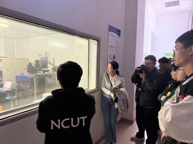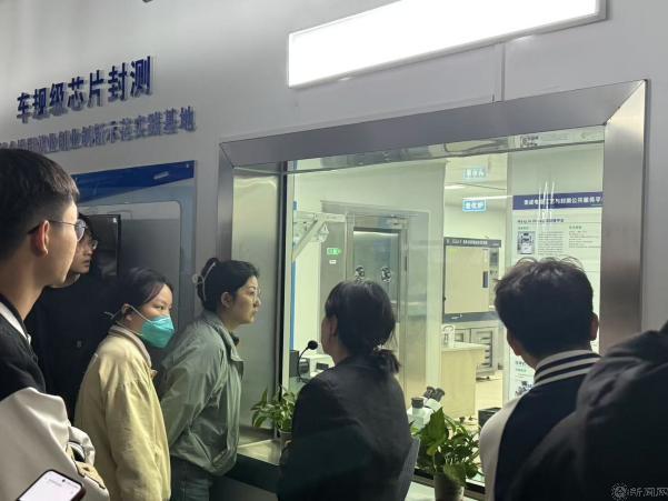 参观集成电路学院超净实验室“芯片封测智能制造校企协同就业创业创新示范基地”和“集成电路工艺与测试实验室”,介绍晶圆切割、键合等核心技术流程并了解到高端测试设备及前沿研究方向。