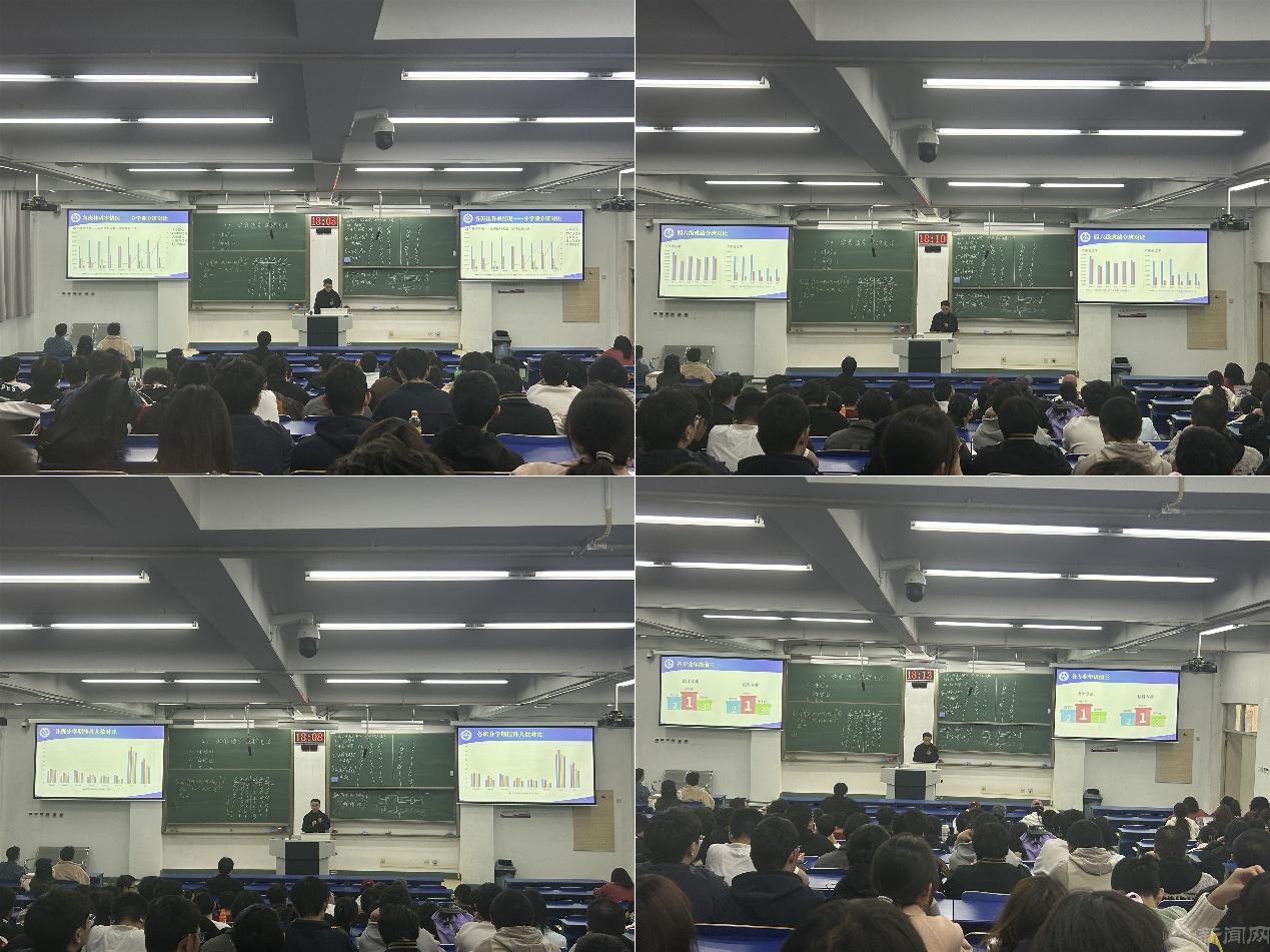 班会通报了2023级学生三个学期以来的学业数据,重点对各班级、各专业在各学期的挂科人数、挂科率、挂科门数、补考通过率及年级排名情况进行对比分析,班会还通报了2023级学生截至目前各班级、各专业的四六级报考通过率、班级通过率及排名情况。通过可视化的数据呈现,进一步增强学生自我反思意识,凝聚榜样力量,激发班级间“比学赶超”的良性竞争氛围,为构建“全员参与、全程跟踪、全方位覆盖”的学风治理体系奠定坚实基础。