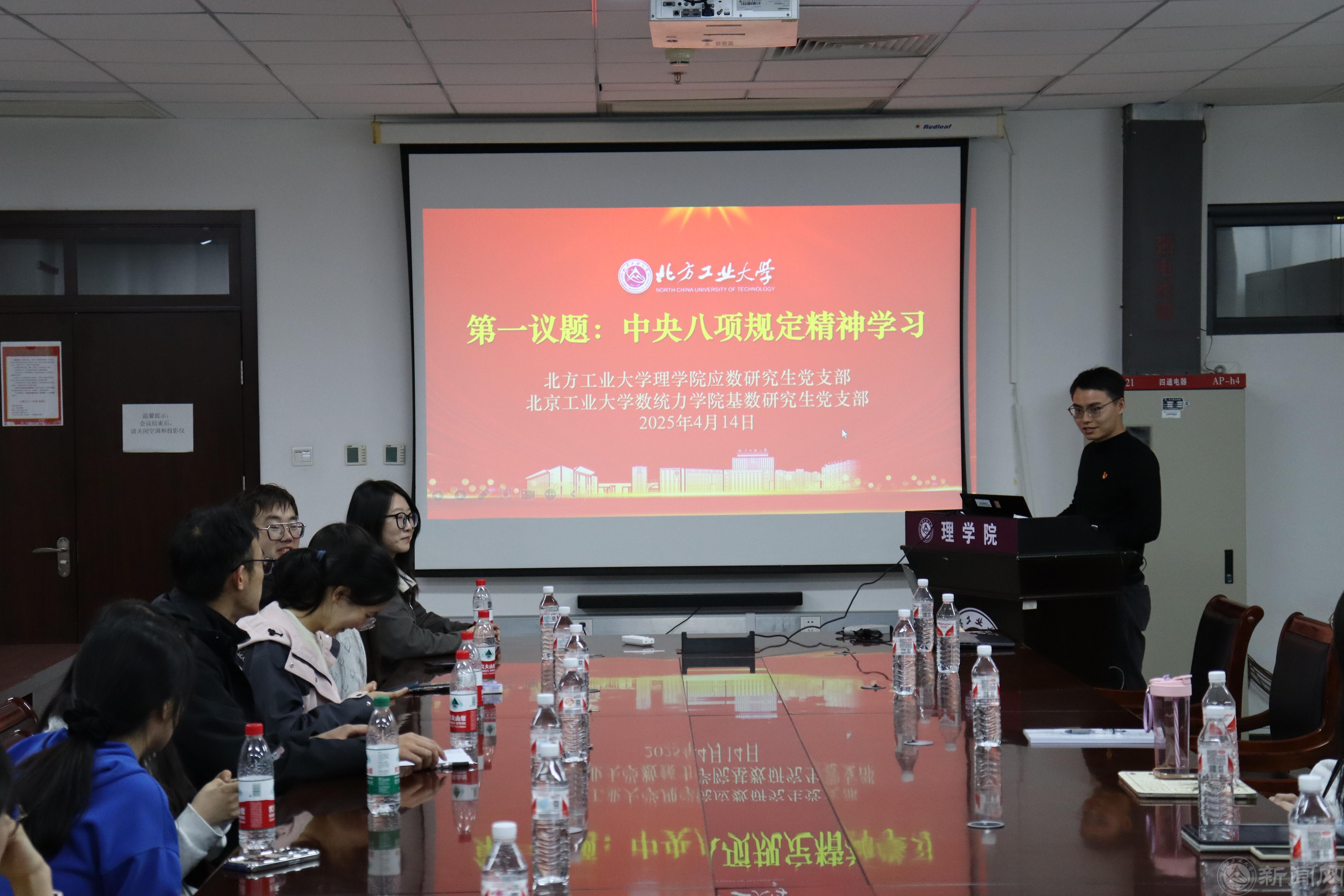 4月14日,世界杯官网理学院应用数学研究生党支部与北京工业大学数学统计学与力学学院基础数学研究生党支部共同开展支部联学共建活动。理学院党委副书记贺映勇、博士生导师邹建成、两支部全体党员参加活动,活动由理学院应用数学研究生党支部书记熊敏主持。