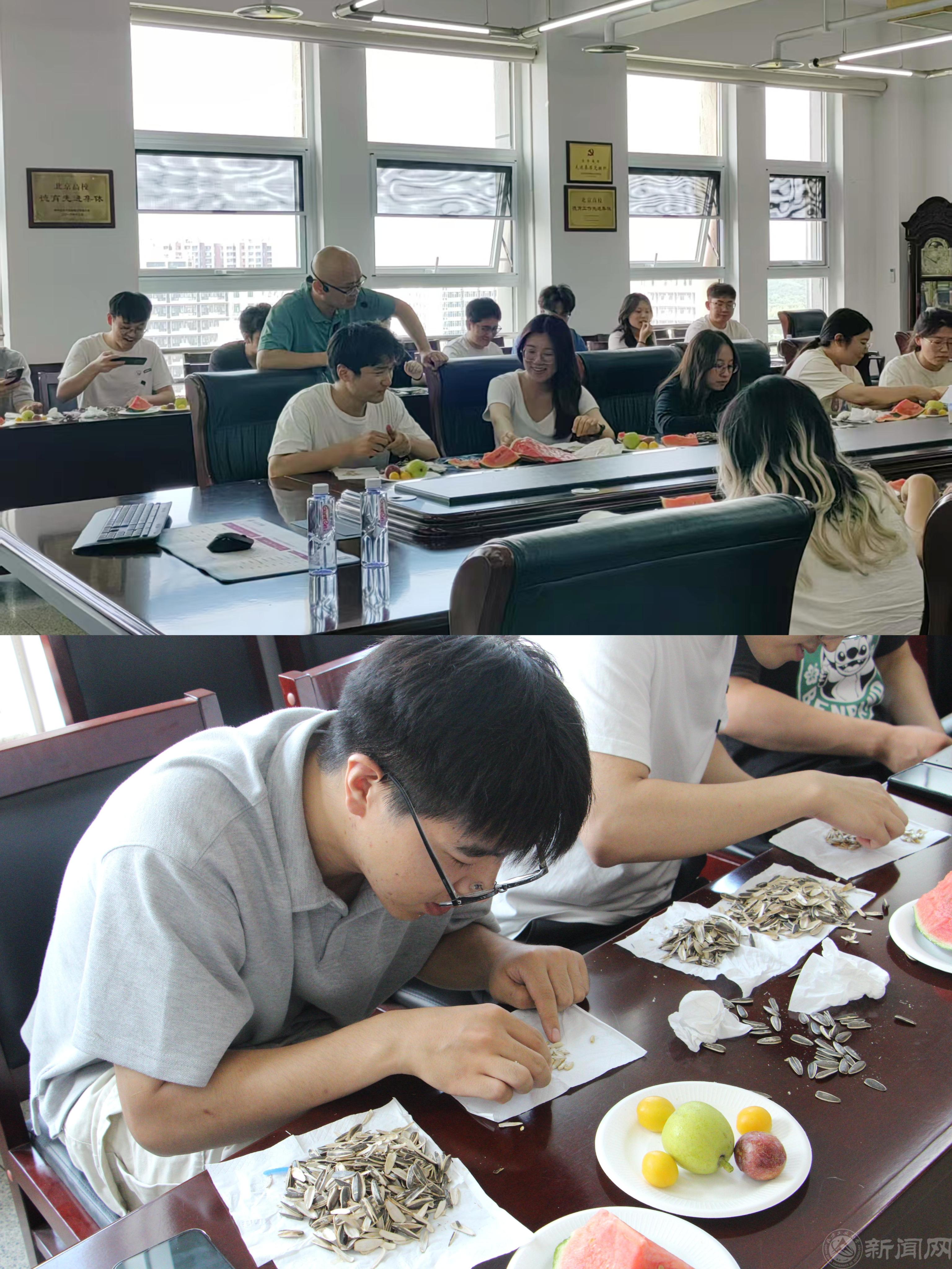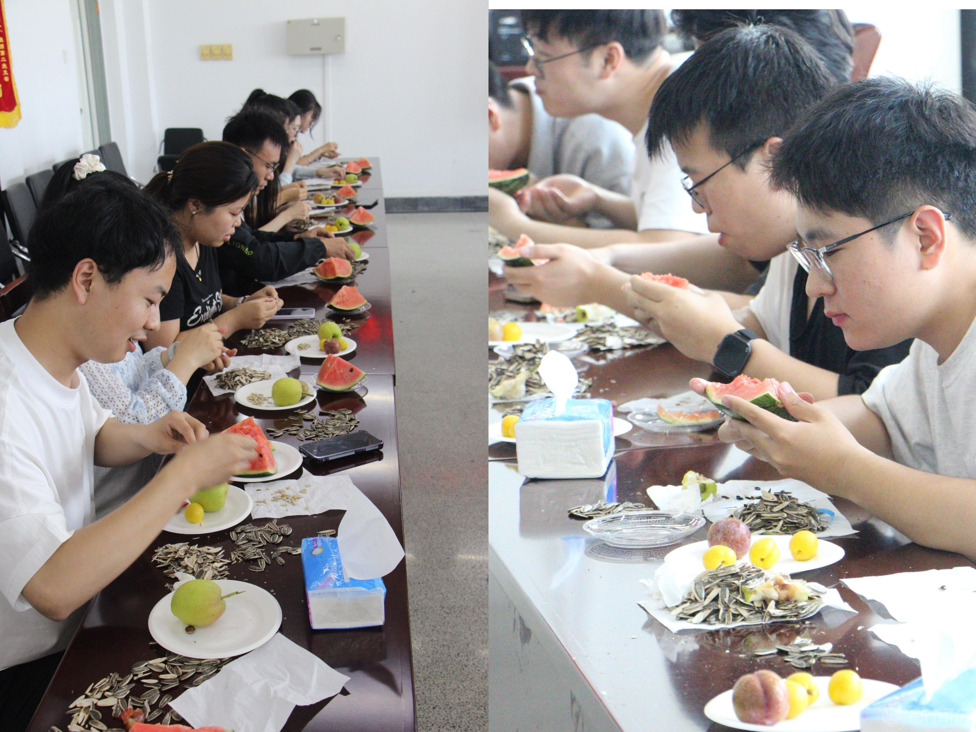 活动现场,轻松愉悦的氛围迅速拉近了师生间的距离。邝宏达老师以极具创意的方式,将科研压力与水果饮食巧妙融合,设计出多个兼具趣味性与启发性的环节。“一口吃一个准 —— 嗑瓜子大赛” 率先拉开活动序幕,同学们需在限时 3 分钟内数出瓜子仁数量。活动过程中,有同学嗑到坏瓜子便随手丢弃,邝老师敏锐地捕捉到这一细节,巧妙引申道:“坏瓜子可以扔,但课题做不下去敢扔吗?” 这一提问瞬间引发了同学们对科研难题应对策略的深入思考。现场同学纷纷踊跃发言,有同学提出 “遇到问题可以分解解决”,在热烈的讨论与欢笑声中,大家对科研困境有了新的认识。