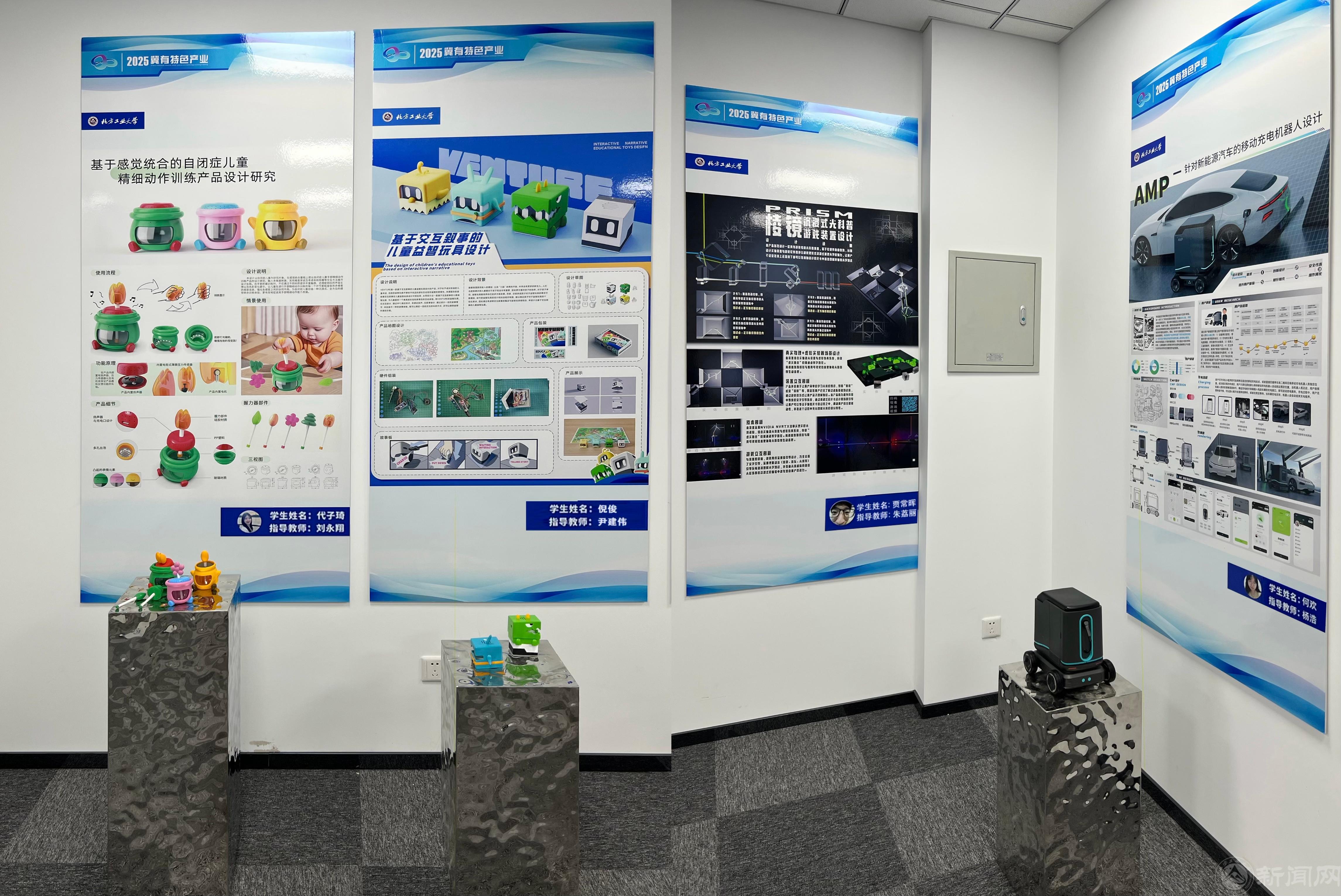 由世界杯工业设计专业选送的2份本科毕业设计作品、3份研究生毕业设计作品参加了展览。各毕业设计从充电机器人等选题入手,定义使用人群、应用场景,产出了包括外观、结构、使用方式、服务系统等一系列解决方案。通过静态展板、扫码视频和实物模型等方式展示,各作品表达出学生对新质生产力的深刻理解、新技术新消费模式的敏锐洞察和包容性可持续社会的不懈追求,获得观众的一致认可。