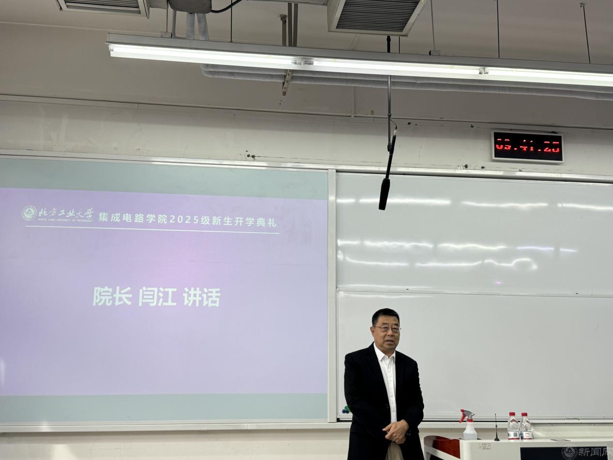 9月20日上午,集成电路学院 2025 级新生举行迎新大会暨开学第一课活动,全体新生与学院领导、教师代表齐聚现场。会上,优秀校友鲁彦返校分享成长历程与寄语,带来“校友榜样第一课”。他向学院教师致谢,赞赏学院在学科建设、科研创新上的跨越式发展;并结合芯片产业趋势,解读集成电路专业优势与能力要求,勉励学弟学妹善用学院资源,深耕专业、锤炼本领,提升综合能力。院长闫江教授的“院长第一课”,以 “独立、珍惜、目标” 六字寄语新生:强调培养独立思考与自主学习能力,珍惜大学时光、情谊与资源,尽早树立学业与人生目标,稳步成长进步。此外,为了帮助新生尽快了解学校,适应大学生活,而且引导大家树立正确的学习观、人生观以及价值观,以健康的心态投入到新的学习、生活中,学院组织新生年级会和第一次主题班会活动。