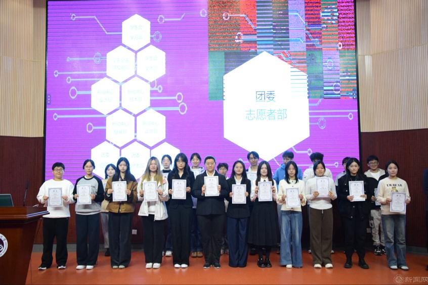 大会以“总结过往、部署新篇、凝聚力量”为主题,现场通过影像资料回顾上一学年团学工作,思想引领走深走实、组织建设提质增效、校园文化亮点纷呈、科创实践成果丰硕、志愿服务广受赞誉……一幕幕青年奋进图景,勾勒出团学骨干“敢担当、善作为”的青春群像。与会老师为新任团学骨干颁发聘书,一张薄笺承载信任与期许,标志着新学年团学工作正式掀开新篇。