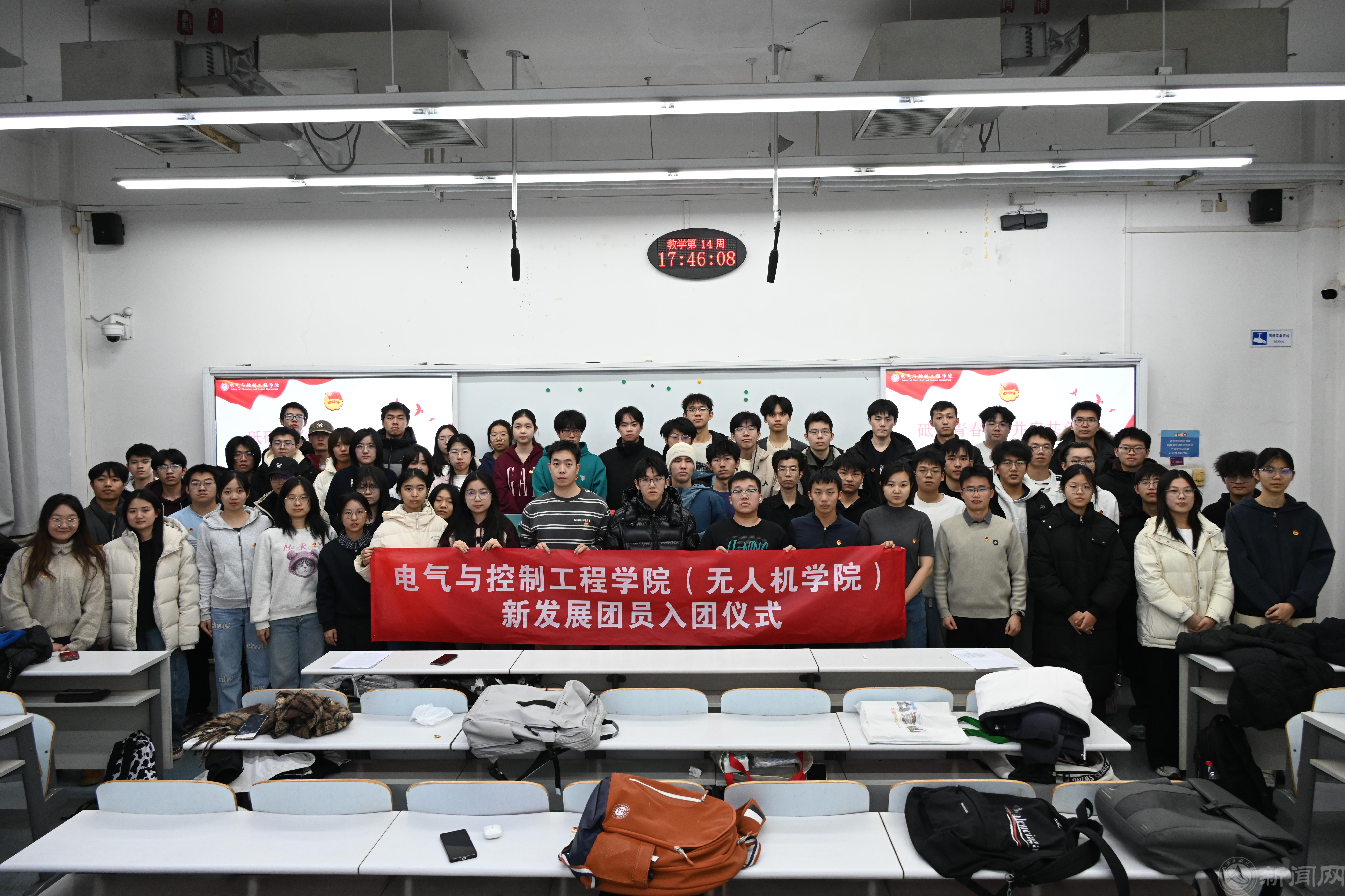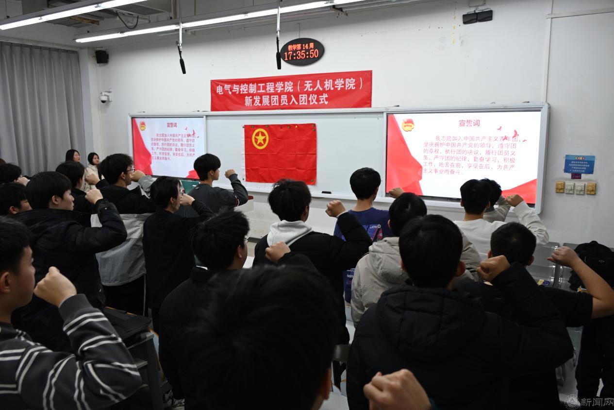 为促使新发展团员进一步明确新时代团员的责任义务,筑牢 “听党话、跟党走” 的思想根基,12月22日,电气与控制工程学院在瀚学楼0103举办2025年新发展团员入团仪式。学院团委副书记范玥、优秀团员代表杨成俊和55名新发展团员参加活动。