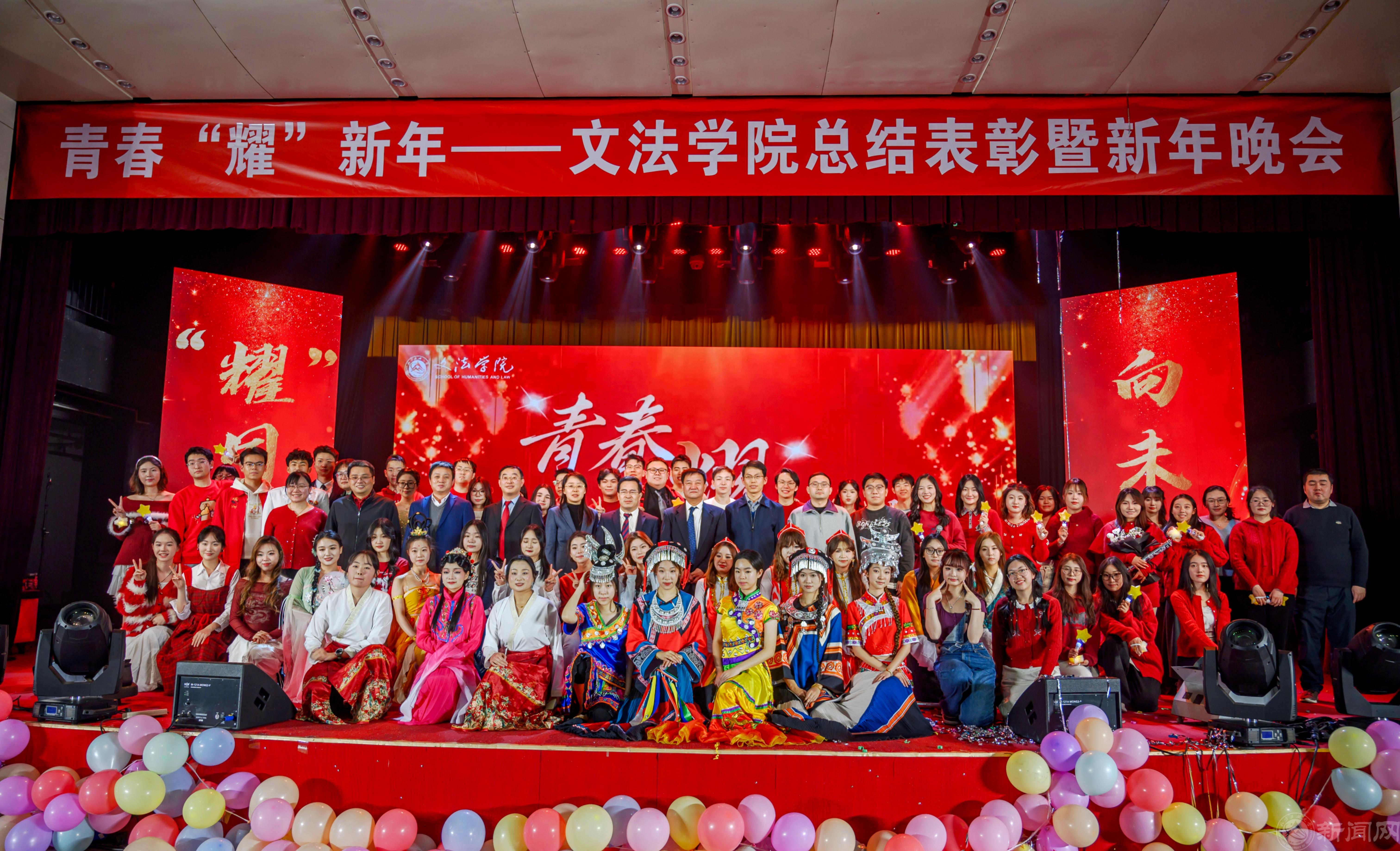 为进一步激励全院教师以教育家精神凝心铸魂,鼓励青年学生砥砺奋进,12月30日晚,文法学院于图书信息楼报告厅隆重举办青春“耀”新年总结表彰暨新年晚会。校学生工作部部长孙宗瑞,校团委书记杨超、副书记田儒基,学院班子成员,全体教师以及学生代表600余人参加了活动。