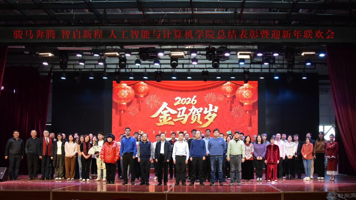 在辞旧迎新之际,人工智能与计算机学院在学生服务楼多功能厅隆重举行“骏马奔腾 智启新程”2026年新年联欢会。学院全体教职工齐聚一堂,共同回顾硕果累累的2025年,展望充满希望的未来新程。
