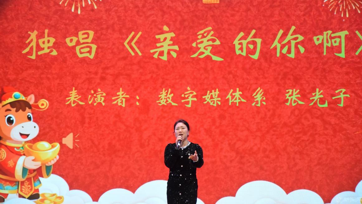 表彰环节结束后,一场精彩纷呈的文艺汇演将联欢会推向高潮。教师们一改平日严谨形象,展现出多才多艺的一面。开场歌伴舞《教师阵线联盟》以轻松幽默的方式展现了教师队伍的凝聚力与战斗力;古典与现代交融的弹唱曲目《青花瓷》彰显了学院教师的人文艺术素养;互动游戏《emoji表情猜词语》引发阵阵欢笑,拉近了同事间的距离;深情合唱《歌唱祖国》表达了教师们对祖国的热爱与祝福;独唱《亲爱的你啊》用温暖歌声传递同事情谊;而大合唱《恭喜发财》则带来了浓浓的年节喜庆气氛。特别值得一提的是,学院教师带来的武术表演《中国功夫》刚柔并济,展现了中国传统文化的魅力;压轴歌曲《明天会更好》则唱出了全体教职工对学院未来发展的坚定信心和美好期许。