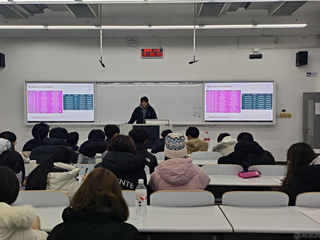 12月18日,首场主题讲座顺利举行,特邀电22-1班获推免资格并被北京邮电大学录取的唐汉林同学主讲。他以《习近平与大学生朋友们》学习感悟为切入点,结合学院推免保研数据拆解政策要点与竞争力提升路径,勉励学弟学妹们紧扣强国建设需求锤炼过硬本领。互动环节中,学长耐心解答学习方法、保研规划等核心疑问,真挚分享赢得现场同学们的广泛认可,氛围热烈融洽。