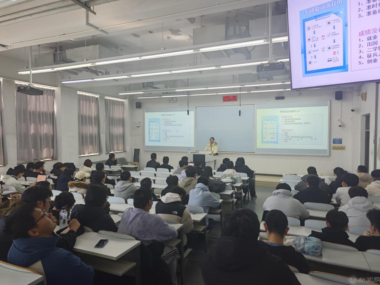 辅导员王鑫淼对毕业生去向进行全面梳理。通过详实的数据,分别就考研复试与调剂、企业就业、出国深造、征兵入伍以及“西部计划”等不同路径进行讲解,帮助毕业生全面了解各类毕业选择。王老师同时提醒大家注意毕业学分获得,增强就业防诈意识。做到心中有数、脚下有路。