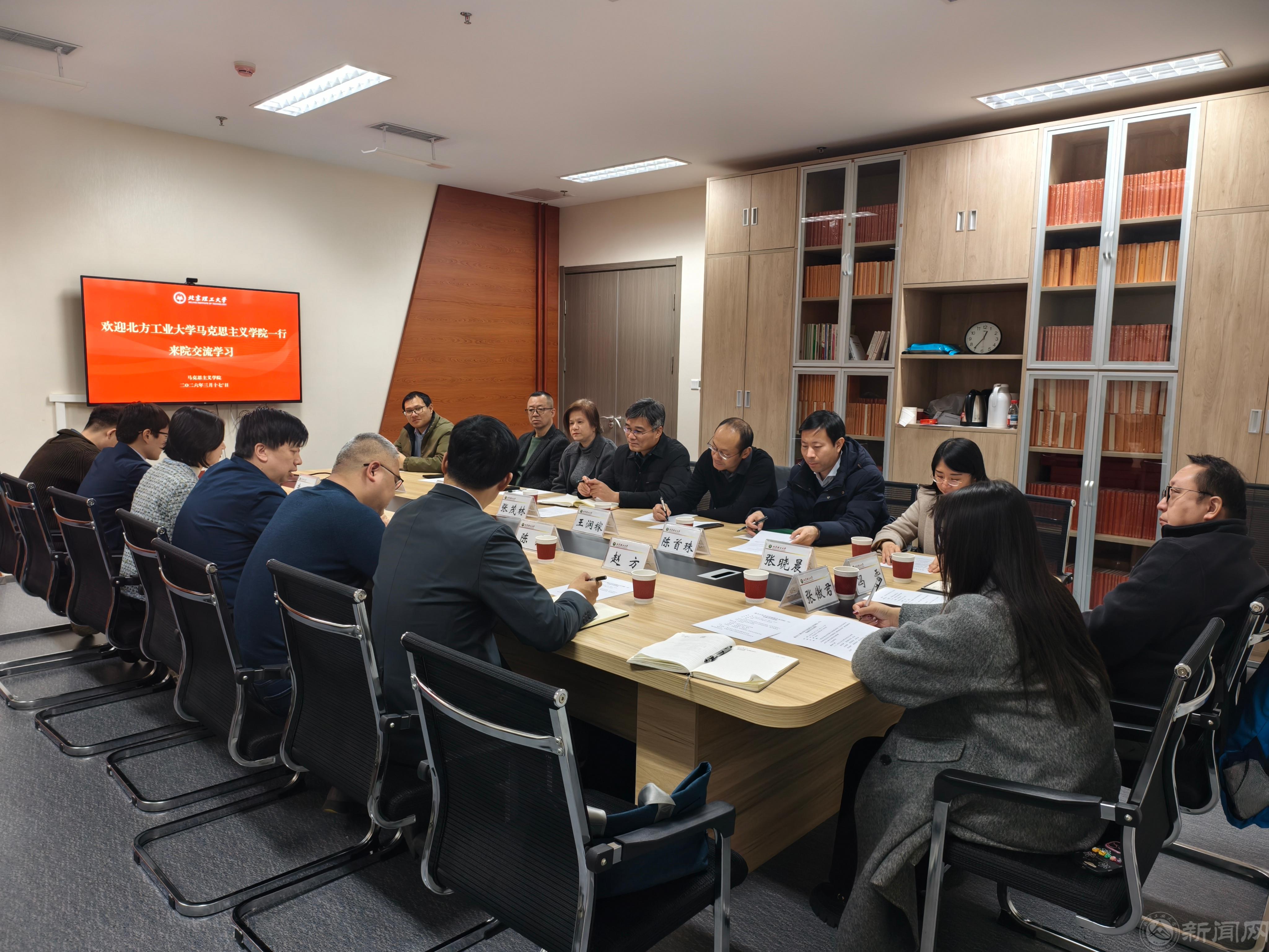交流座谈会于北理工良乡校区文萃楼J615会议室举行,会议由张虹主持。会上,刘新刚围绕北京市重点马院建设实践、《习近平新时代中国特色社会主义思想概论》课程建设成效、数字赋能思政育人新生态构建等核心内容,分享了北理工马院在思政课改革、数字化教学融合、党建与学科交叉等方面的先进经验和创新探索。随后,双方参会人员聚焦思政课程体系建设、数字技术与思政教学深度融合、科研促教学、教学管理等方面展开深入研讨,各教研室负责人结合教学实践交流心得、探讨问题,在思想碰撞中凝聚育人共识,拓宽建设思路。
