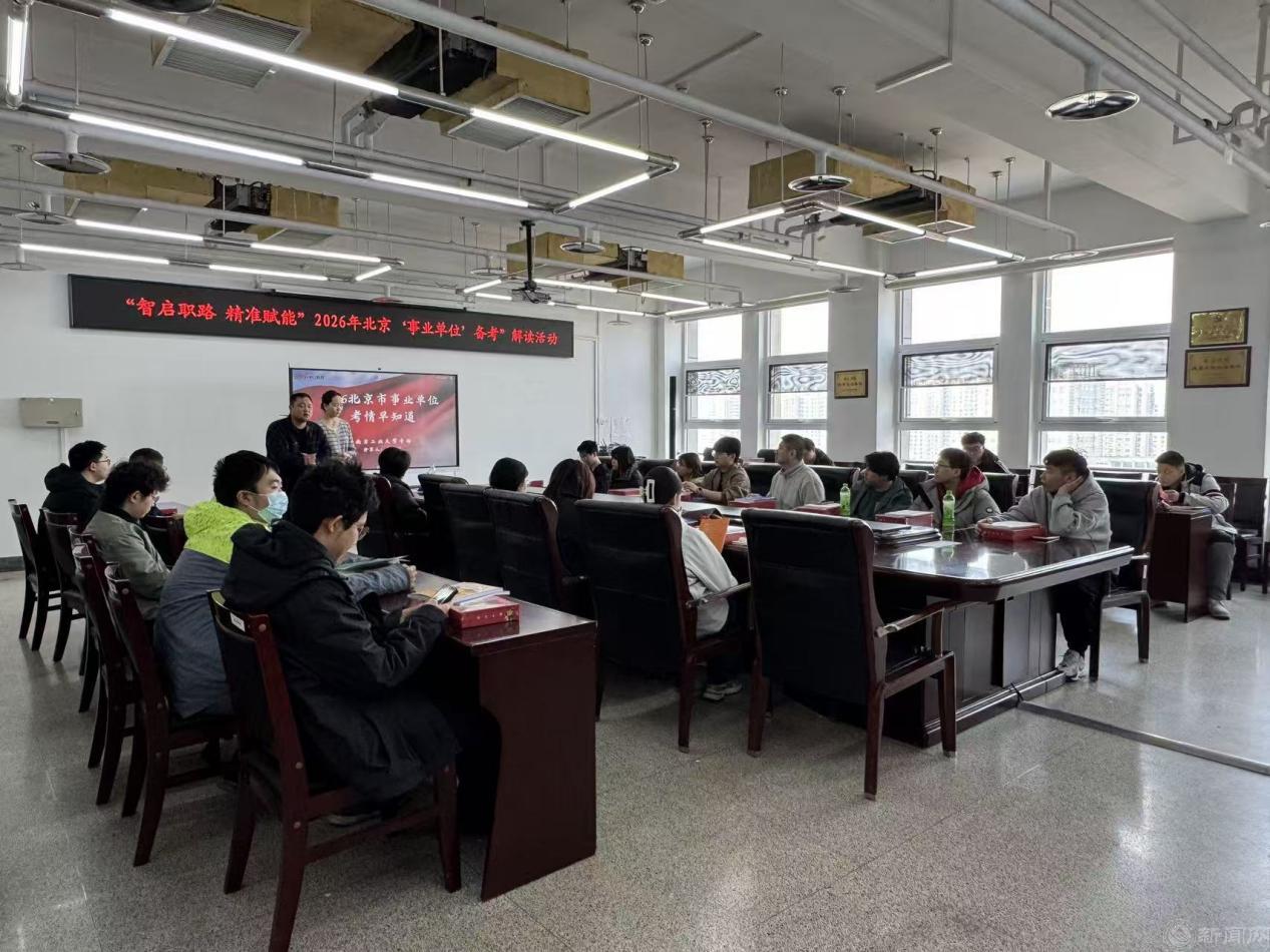 3月23日,人工智能与计算机学院举办2026年北京事业单位备考解读活动,切实助力2026届毕业生明晰北考试方向,破解备考难题,拓宽就业渠道。活动特邀北京中公教育贾玉洁老师主讲,聚焦毕业生备考痛点、难点,结合2026年北京事业单位招聘新形势、新政策,为同学们提供全方位、专业化的备考指导。