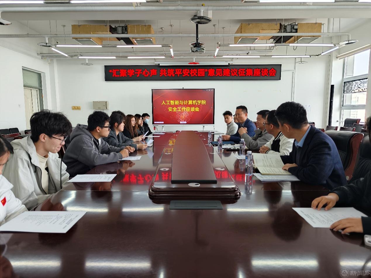 汇聚学子心声,共筑平安校园。3月26日上午,人工智能与计算机学院联合安稳处组织召开平安校园建设意见建议征集座谈会。安稳部(处)副部(处)长刘有宝、治安中心负责人孙国琦,智能学院党委副书记靳现凯、团委书记杨和家与来自学院各年级学生代表齐聚瀚学楼1014会议室,面对面交流沟通,共商校园安全治理良策。