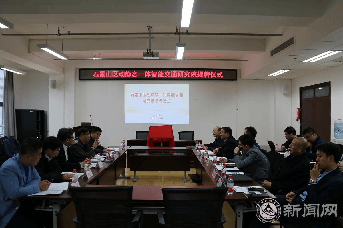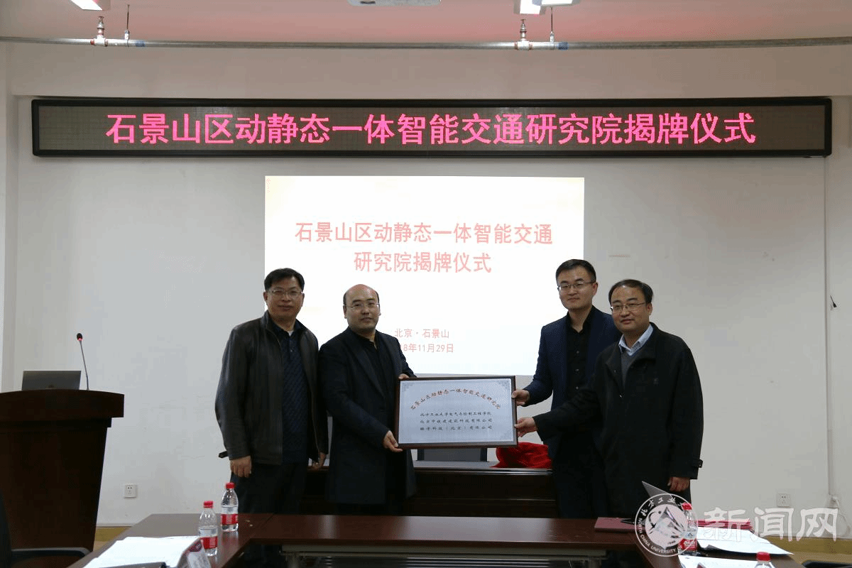 最后,王力院长、于程水总经理、汤波总经理签订了合作协议,柯军副主任、韩飞副处长、王力院长共同为“石景山区动静态一体智能交通研究院”揭牌、授牌。