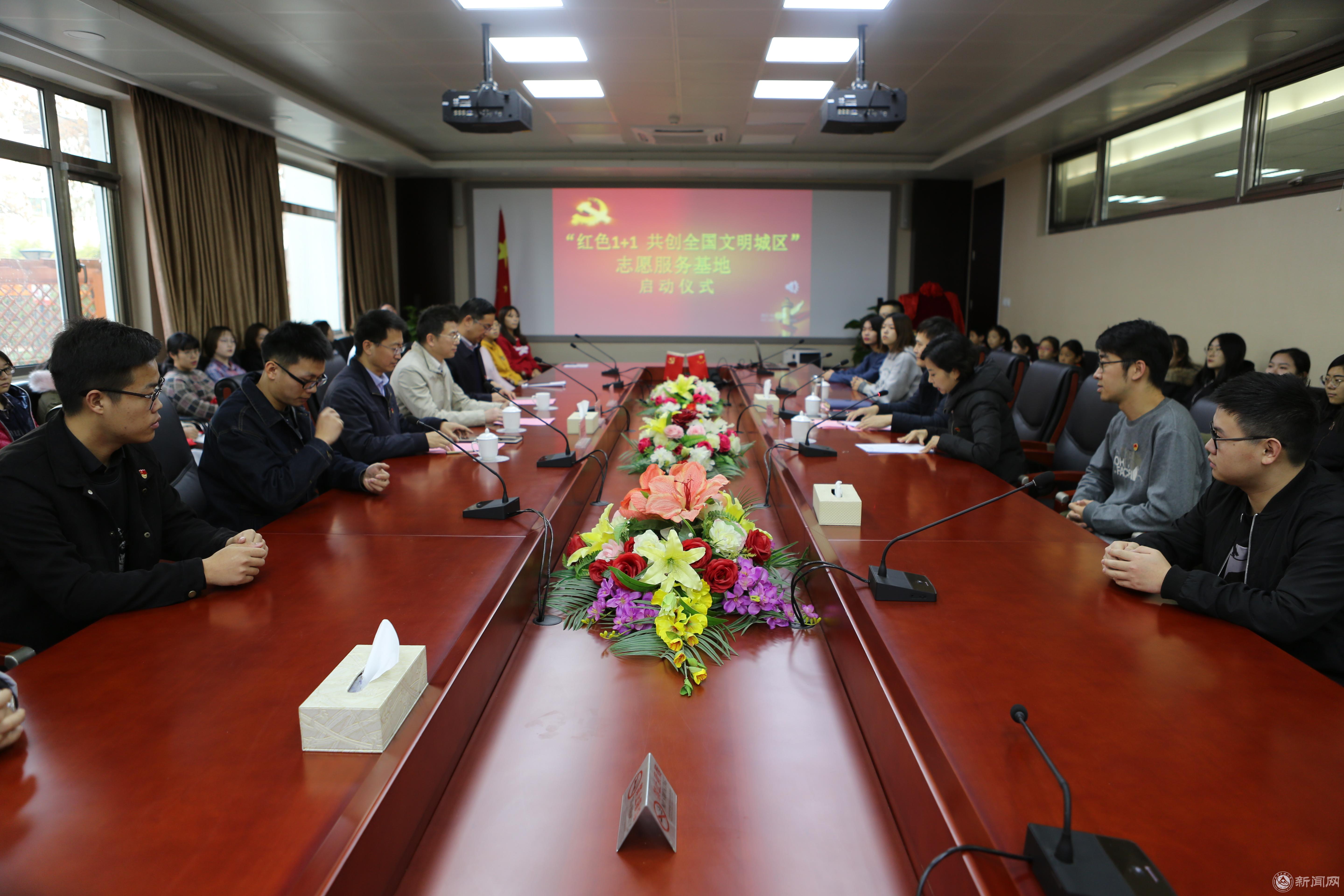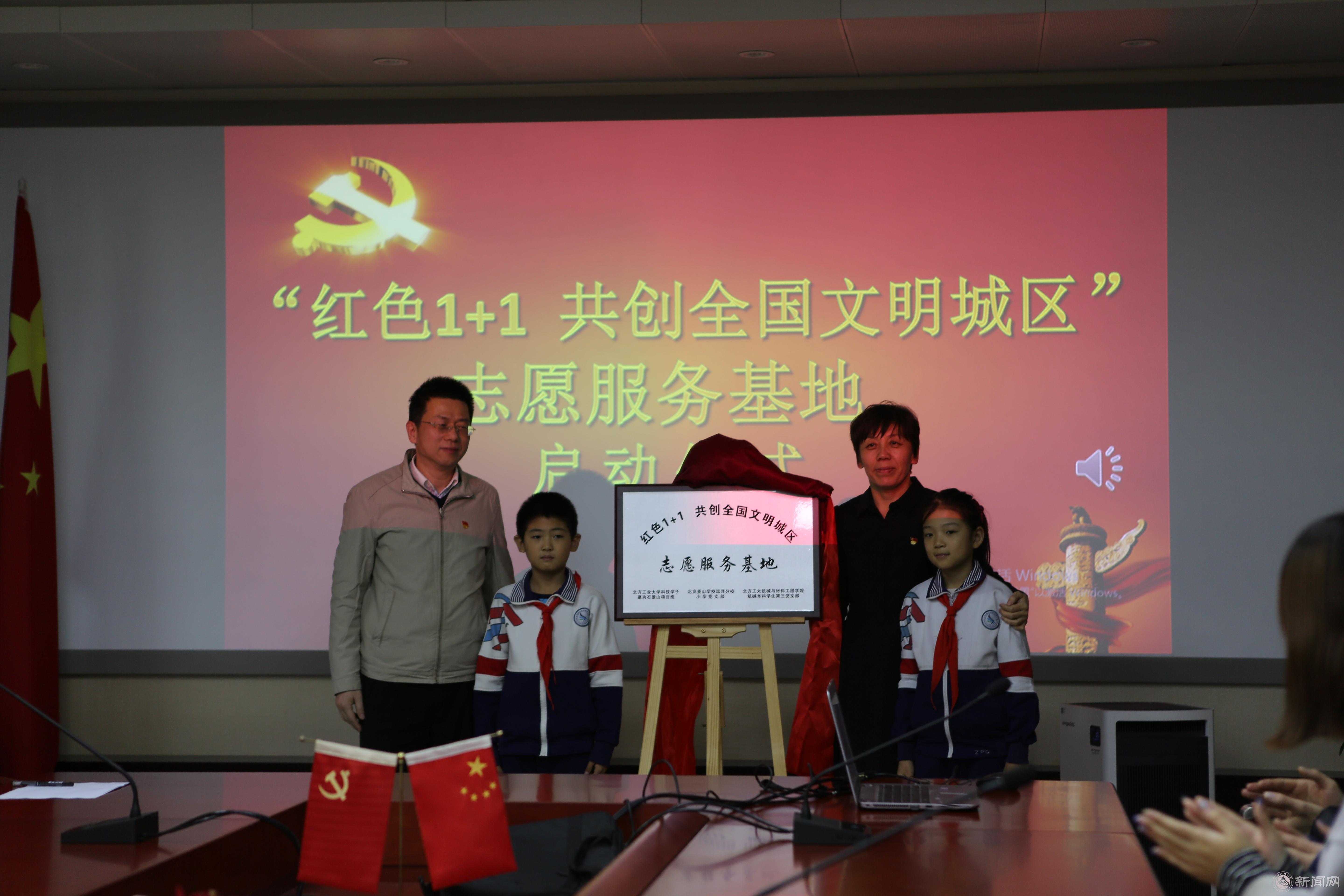 世界杯机械与材料工程学院党委书记王文革与北京景山学校远洋分校校长、党委副书记吕丽一起为“红色1+1 共创全国文明城区”志愿服务基地揭牌。机械与材料工程学院机三党支部党员代表李扬扬同学作为科技志愿者代表发言。
