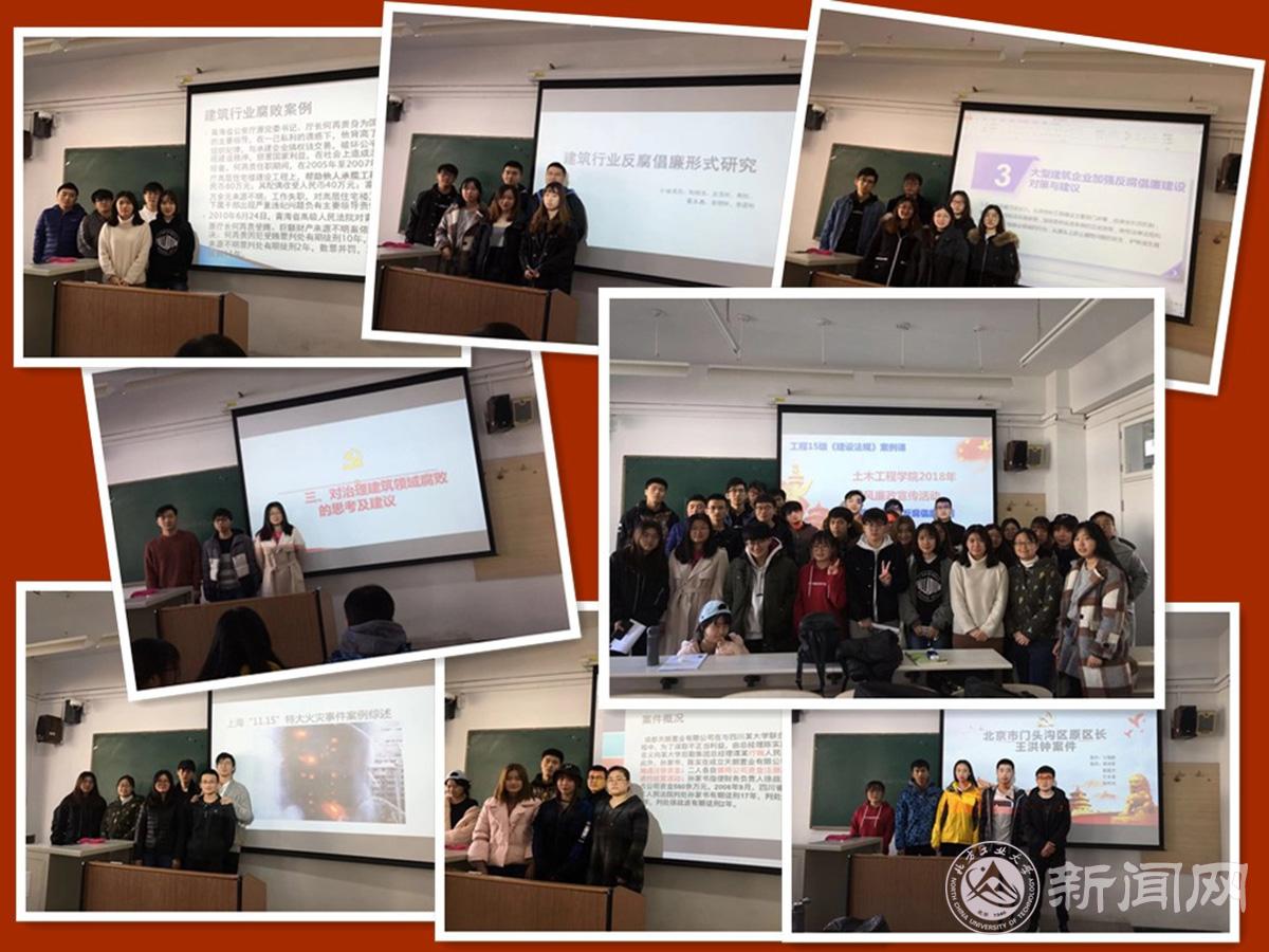 为深入学习贯彻党的十九大精神,全力推动习近平新时代中国特色社会主义思想“进教材、进课堂、进头脑”,作为学校2018年党风廉政宣传教育重点活动之一,近日,土木工程学院结合工程管理专业2015级毕业班的《建设法规》课程,开展了“建筑行业反腐倡廉警示教育进课堂”活动,并进行了成果展示。
