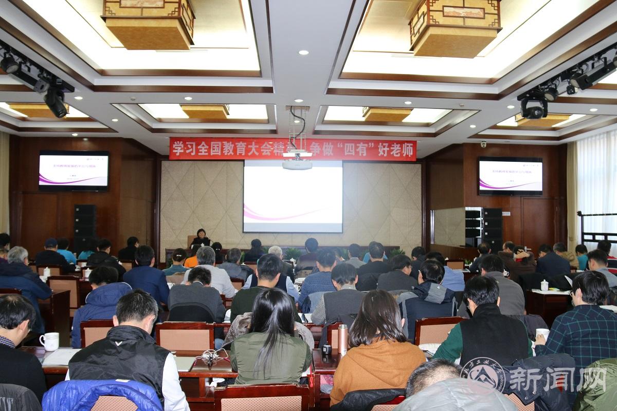世界杯人事处处长、教师工作部部长毛燕梅老师作了题为《支持教师发展的平台与措施》的专题报告。她首先对学校近几年深入推进教师师德建设及职业素养提高等方面采取的举措做了概略性的总结。学校长期以来一直高度重视师德师风建设,不仅有严格的制度规定,也有日常的教育督导。然后,她重点围绕学校“十三五”发展规划、教师发展与服务措施、突出本科教学、强化育人四个方面来谈教师的责任与使命,并对学校支持教师发展的平台与措施进行了权威、详细、全面的解读,希望大家充分利用好这些平台与条件,制定好发展规划,不断提升育人本领和科学研究水平,为学校、学院事业发展做出更大的贡献。