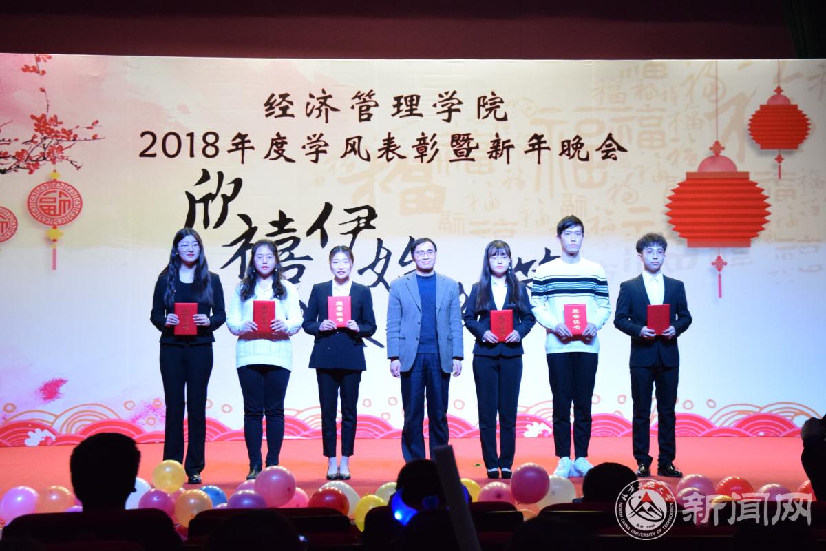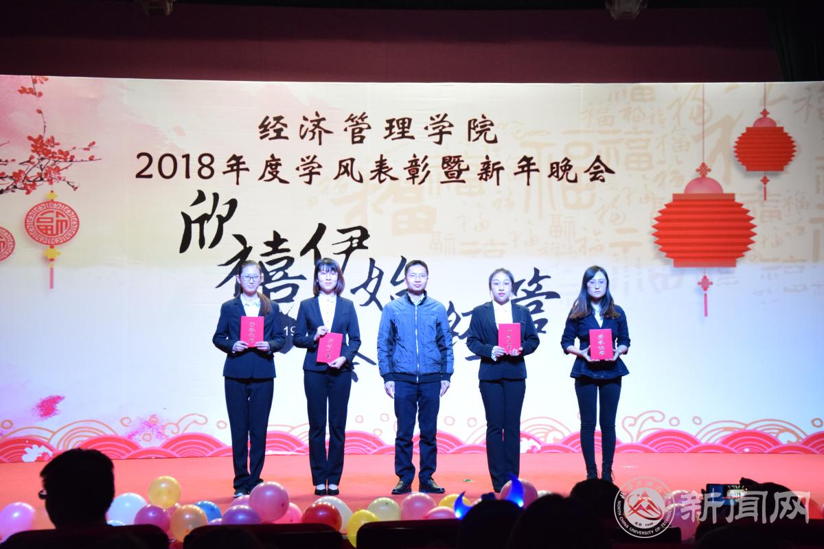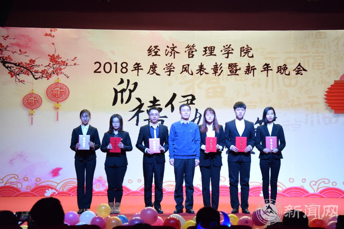 12月18日晚,经济管理学院在图书馆报告厅举办“欣禧伊始 荟萃经管”2018年度学风表彰暨新年晚会。学生工作部部长高国伟、校团委书记何有华、学生工作部副部长赵帅、经济管理学院全体领导班子成员、各系主任、班导师、辅导员及600余名同学共同参加了本次晚会。