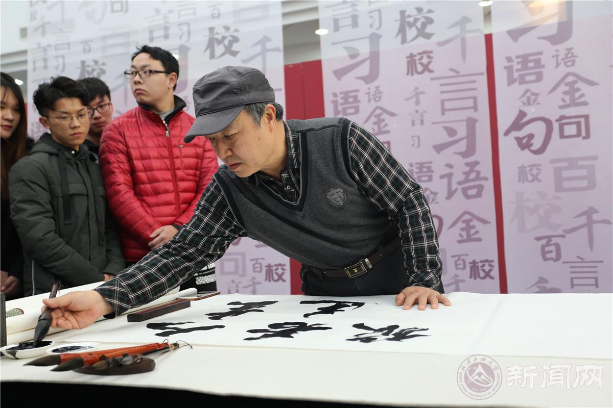 12月27日上午,由共青团中央学校部主办的“习语金句百校千言”书法展(世界杯官网站),在静学楼二层中庭开幕,书法展汇集了社会各界书法名家的作品,由团中央学校部组织在全国100所高校开展巡展活动。结合全团正在开展的“青年大学习”行动和“四进四信”活动,推动习近平新时代中国特色社会主义思想在广大青年中入耳入心入脑,引导广大青年不忘初心、牢记使命,切实增强“四个意识”、坚定“四个自信”。校团委书记何有华,校团委副书记陈国秀,建筑与艺术学院党委副书记杨超,校教师书画协会会长吴润衡及相关部门的教师、学生代表参加开幕仪式。