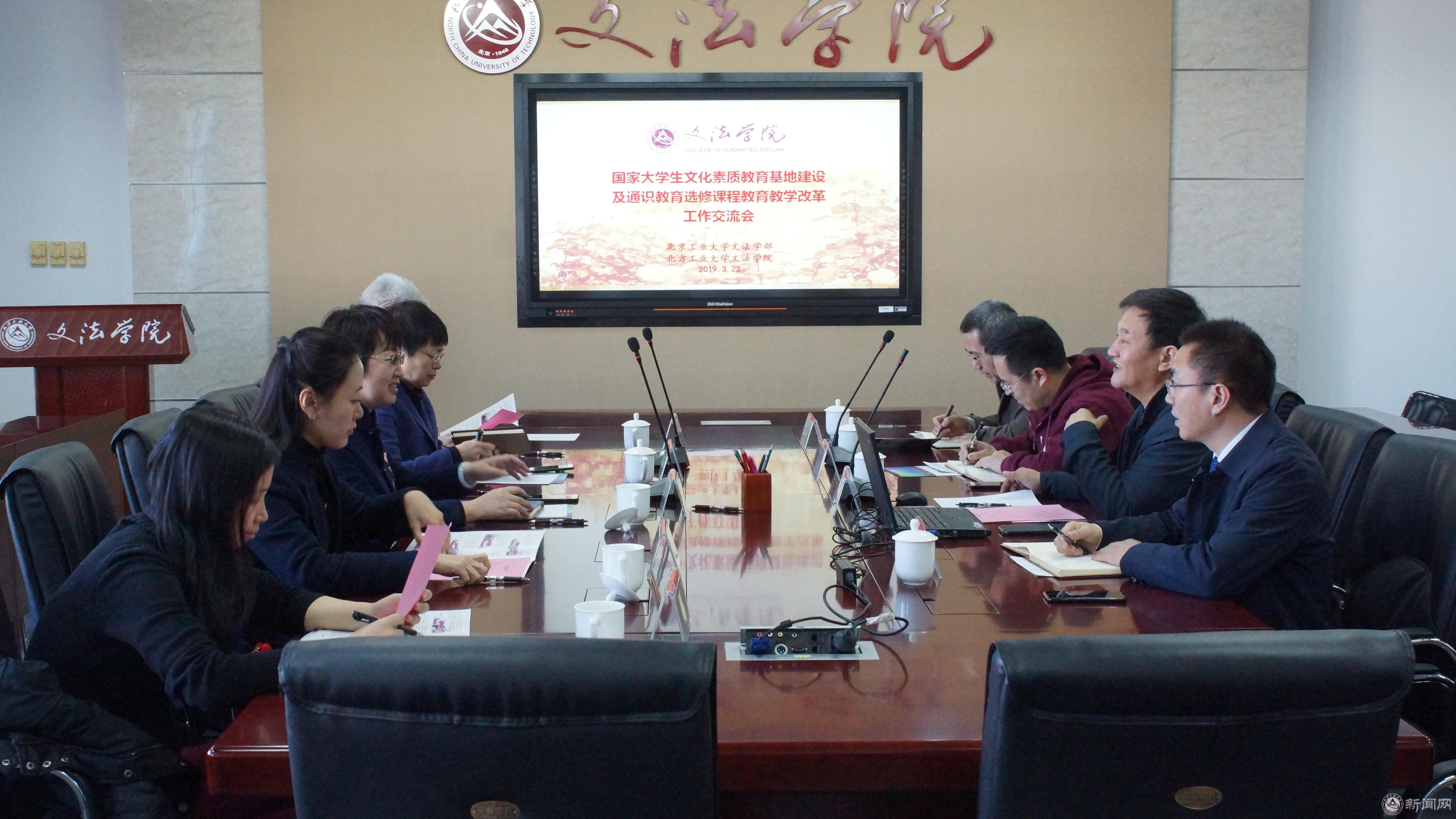 3月22日上午,北京工业大学文法学部党委书记李娟等一行5人来世界杯调研国家大学生文化素质教育基地及通识教育选修课等工作。学校党委副书记田红芳会见了客人,文法学院院长刘泽军、副院长袁凤识、副书记刘祥坠、全国大学生文化素质教育基地常务副主任王德岩和教务处有关人员参加了座谈。