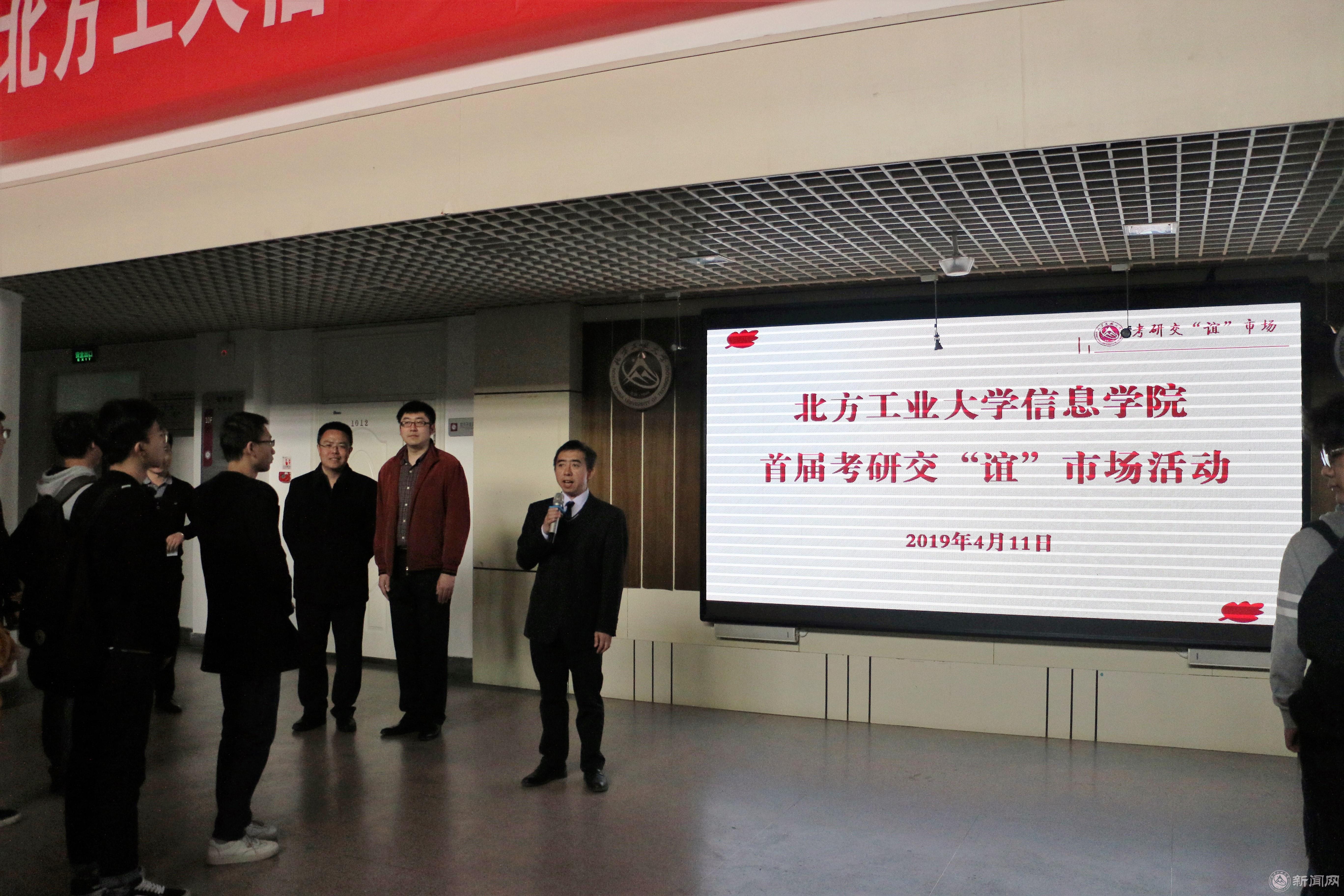活动伊始,院长马礼简要总结了学院近年的考研成绩,分析了当前的考研形势,鼓励同学们要树立信心、梳理信息、整合资源,做好考研经验的交流和传承,为备战2020年考研做好充分准备。随着马礼院长宣布信息学院首届考研交“谊”市场活动开幕,两条包含激励的条幅从天而降:“考研赢在起跑线——第一志愿院校的选择;考研输在不坚持——第四科目考试的放弃”。
