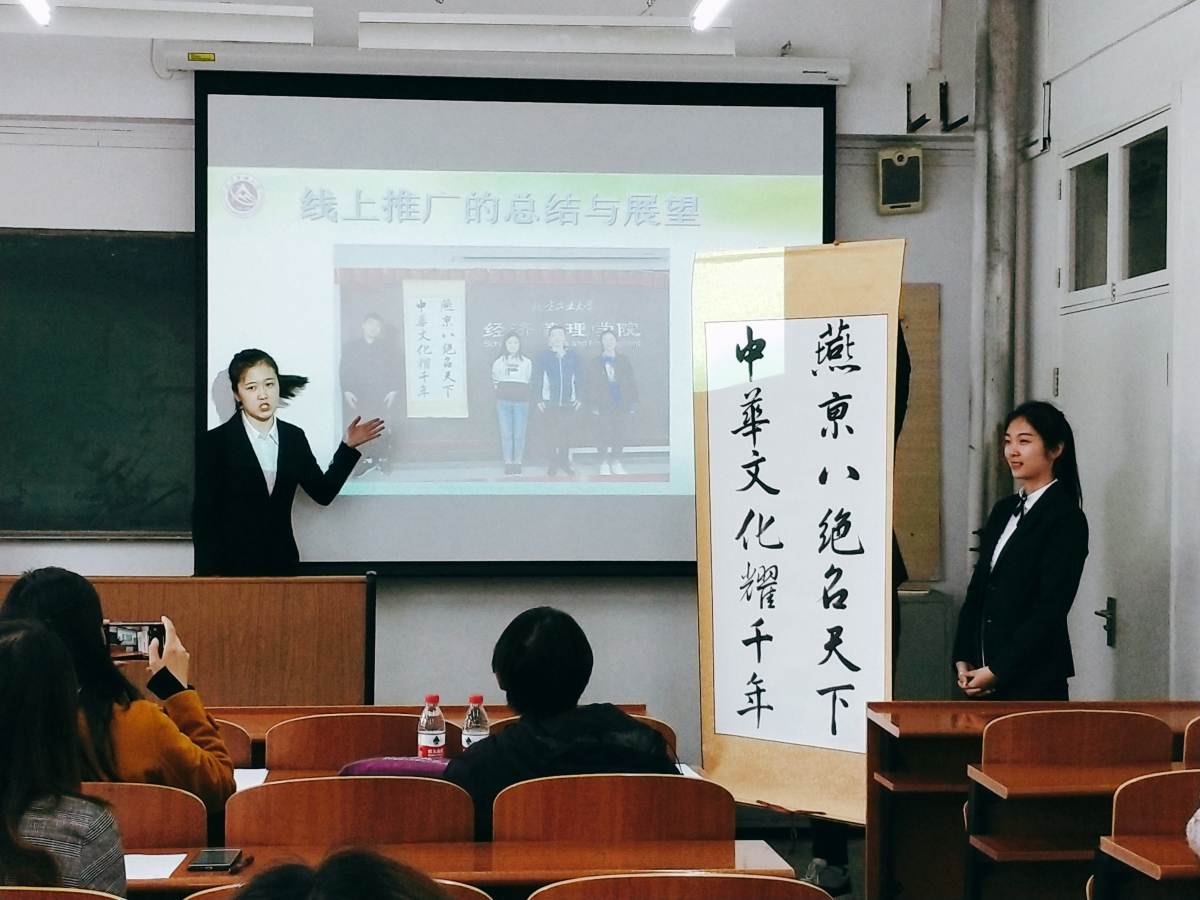 4月16日下午,由校团委主办、经济管理学院承办的首届非物质文化遗产传承创意营销大赛决赛在励学楼218教室举行。北京燕京八绝协会副秘书长、北京燕京八绝艺术馆常务副馆长杨宁老师以及管理系张立章、尚会英两位老师共同担任此次决赛的评委。
