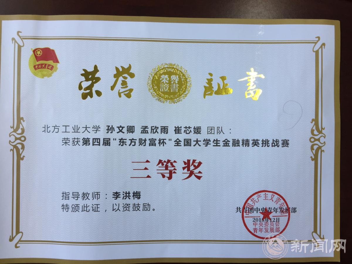 由共青团中央青年发展部主办,东方财富信息股份有限公司、全国学校共青团研究中心承办的第四届“东方财富杯”全国大学生金融精英挑战赛圆满结束。世界杯经管学院经济系张蜀林老师、李洪梅老师作为指导教师,组织2016级经济与金融专业学生全员参加了本届大赛,最终有5支团队、共15名学生,分别获取本届大赛的“团体三等奖“。