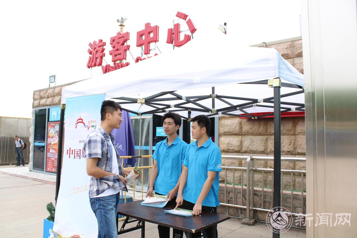 在“中国旅游日”志愿服务活动中,部分志愿者发放宣传手册,向游客认真介绍中国旅游日的发展情况。另一部分志愿者协助疏散游客,对游客进行引导。同学们热心细致的服务获得了工作人员和游客的一致好评。