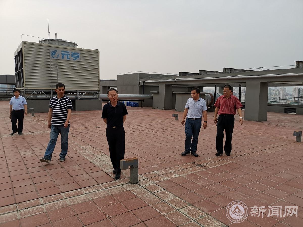 为做好2019年校园防汛工作,排除防汛安全隐患,6月4日下午,由副校长胡应平带队,后勤基建处、安稳处、服务中心等部门相关人员陪同,对学校防汛重点部位、区域,就防汛汛期准备工作进行了检查。
