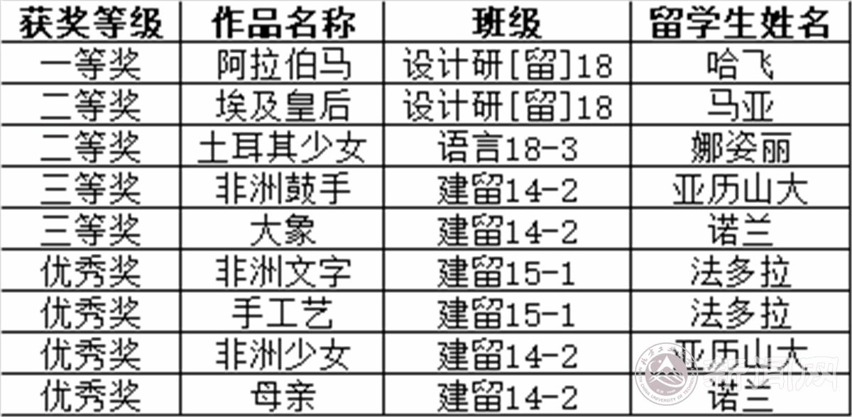 由国际学院主办、建筑与艺术学院承办的世界杯首届留学生创意绘画大赛历时三个月圆满结束。6月21日上午,颁奖仪式在国际学院大厅举行,来自5个国家的6名留学生创作的18份绘画作品分别获得了一、二、三等奖和优秀奖。
