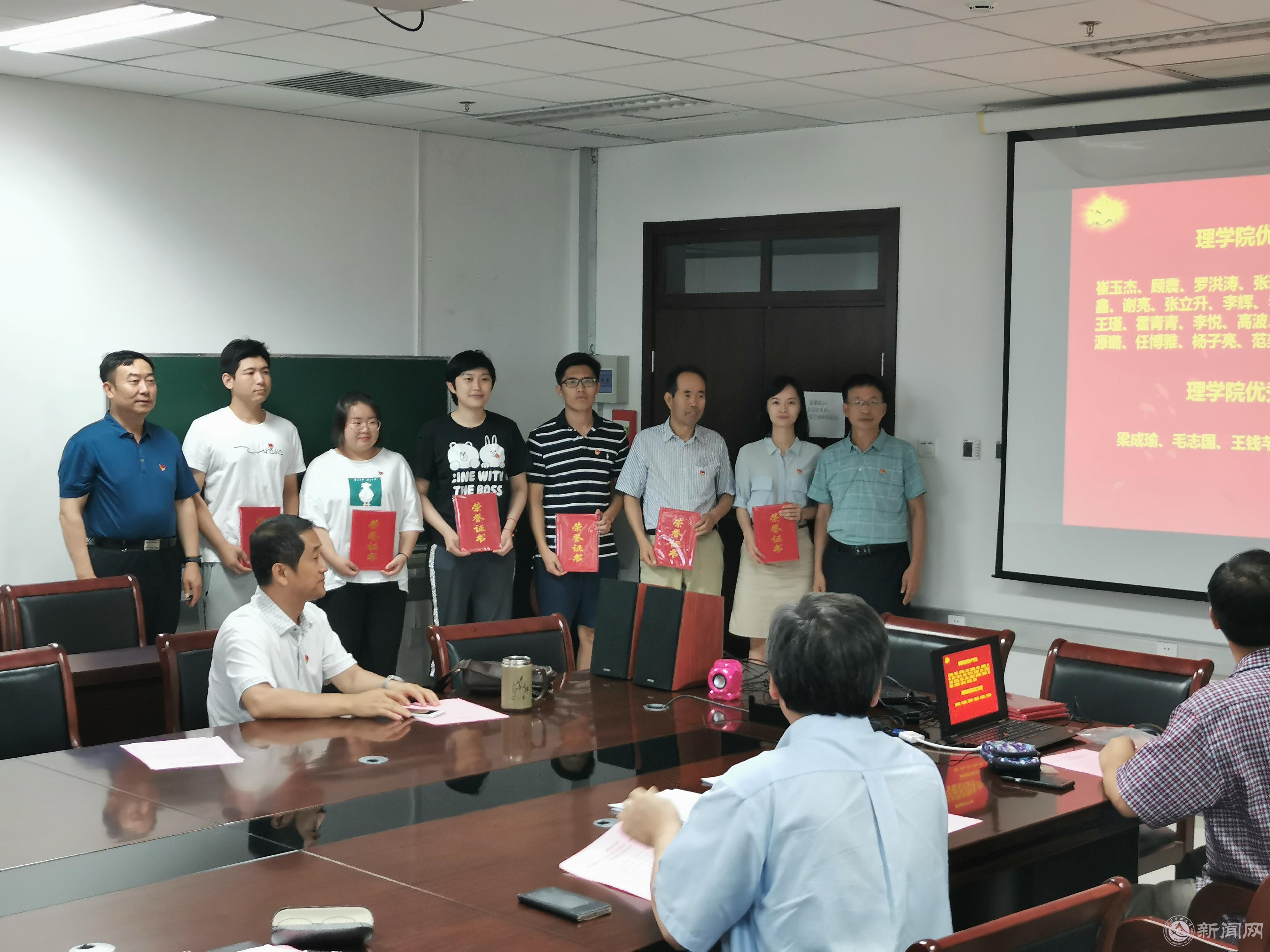 理学院院长张建国同志宣读了《理学院党委关于表彰2017-2019年度先进党支部、优秀党员和优秀党务工作者的决定》;王建稳副校长,学院院领导为受表彰的优秀党员代表、优秀党务工作者代表和先进党支部颁奖。随后,进行了新党员入党宣誓仪式,院党委委员为新入党党员佩戴了党员徽章。