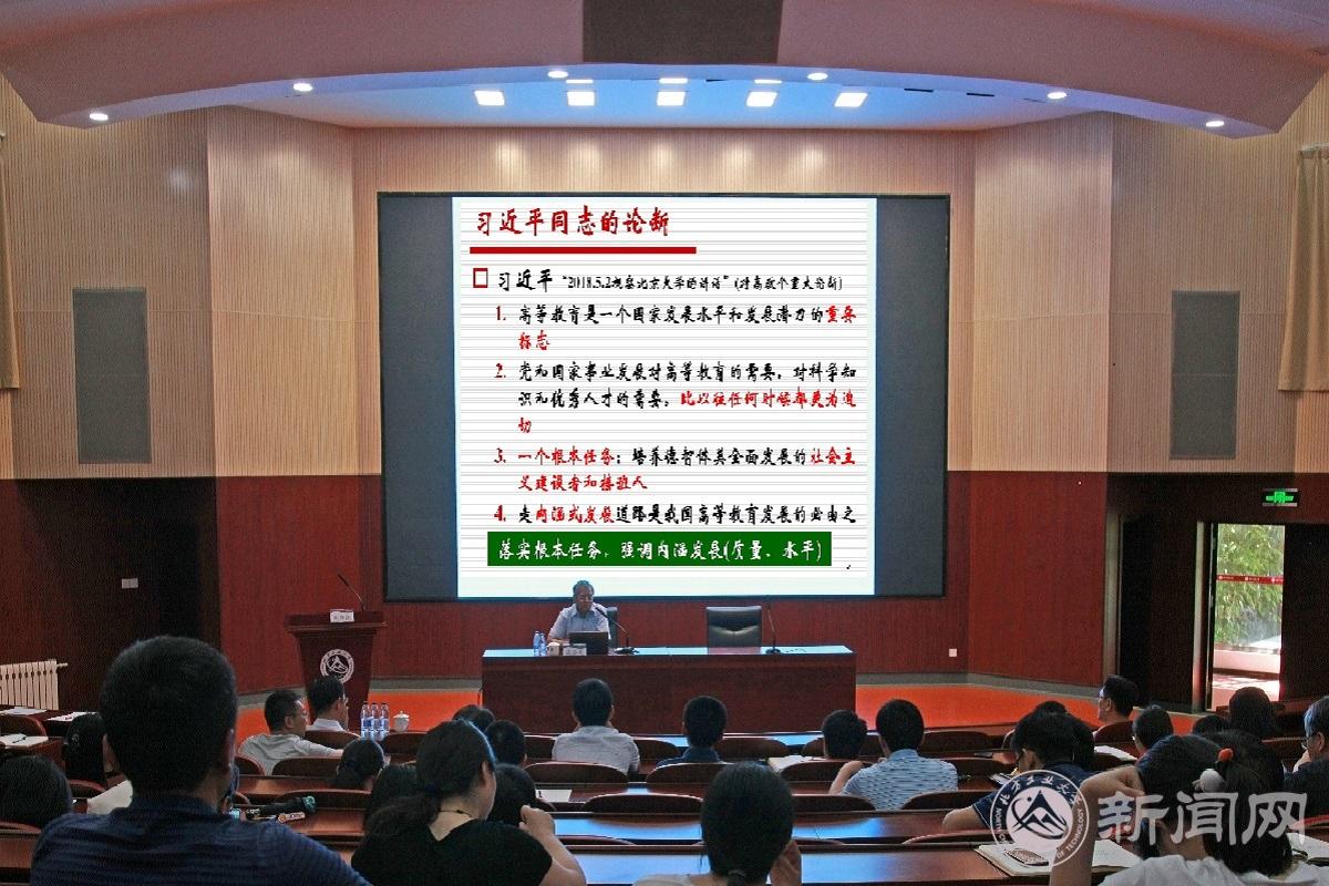 7月2日上午,宣传部、人事处(教师工作部)联合组织开展理论培训,邀请国家级教学名师、北京工业大学蒋宗礼教授来校作“强化使命感 做好学生的引路人——教师以培养人才为天职”专题报告。此次培训是学校师德考核年学习实践活动的重要组成部分,学校“毓秀青年”习近平新时代中国特色社会主义思想培训班2019年班次学员、新入职青年教师等近200余人参加了学习。培训由人事处处长谢朝阳主持。