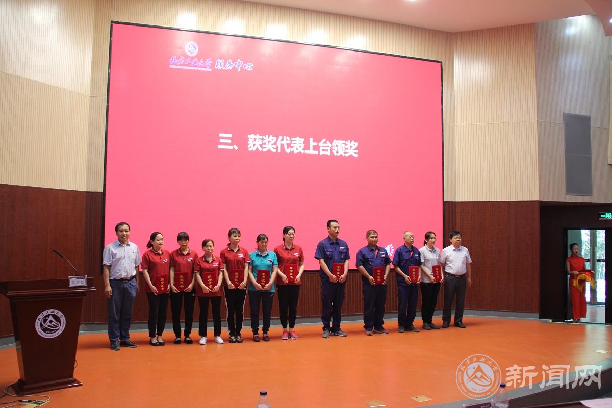 后勤基建处处长赵永兵宣读《服务中心关于表彰2019年“毓秀工匠”岗位技能大比武获奖人员的决定》,对取得优异成绩的职工进行表彰。后勤基建处处长赵永兵、服务中心总经理胡春江、后勤基建处副处长杨培鑑、刘通祥对在此次活动中获奖职工代表颁发了获奖证书。