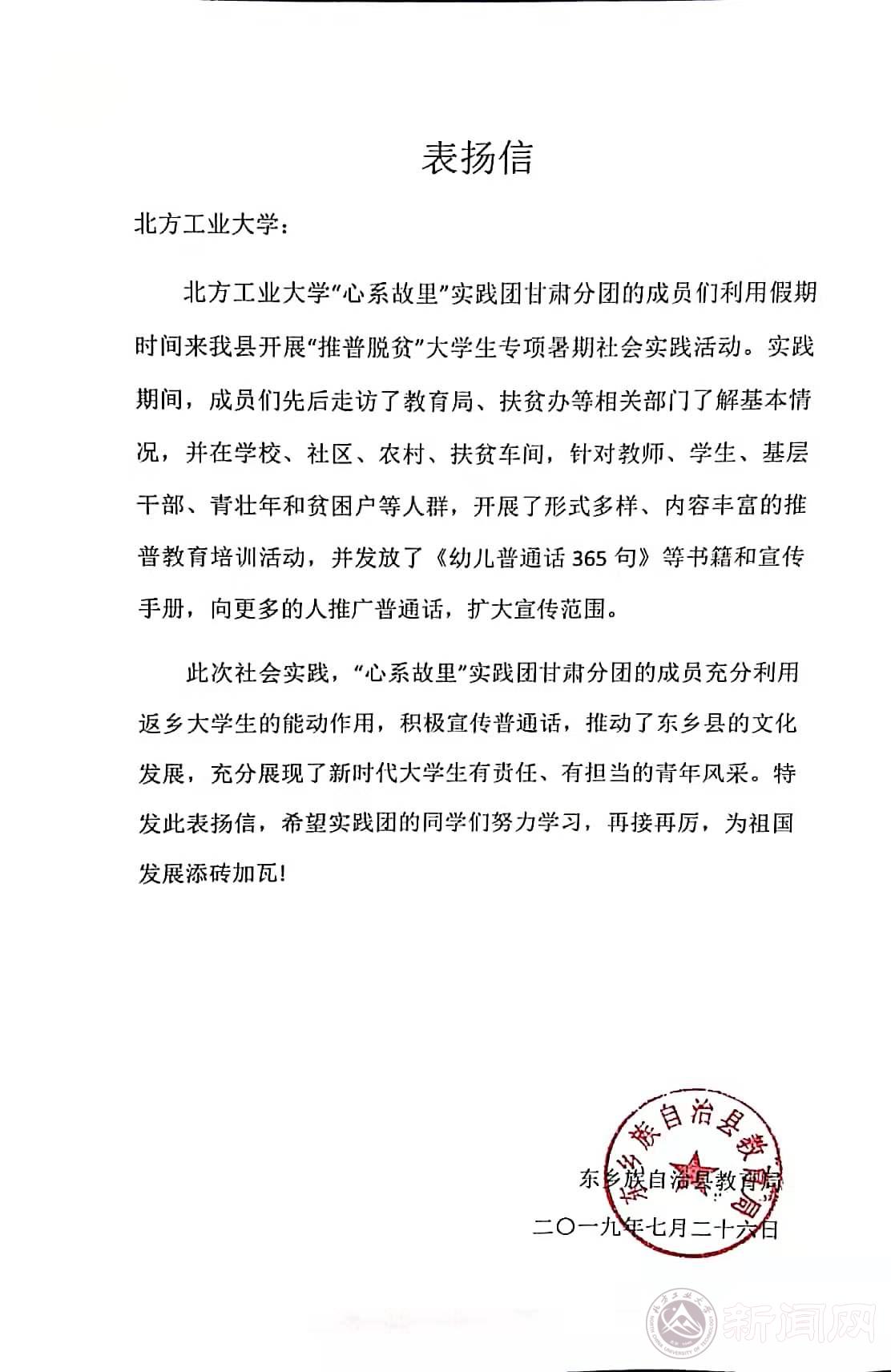甘肃分团受到东乡县教育局表扬