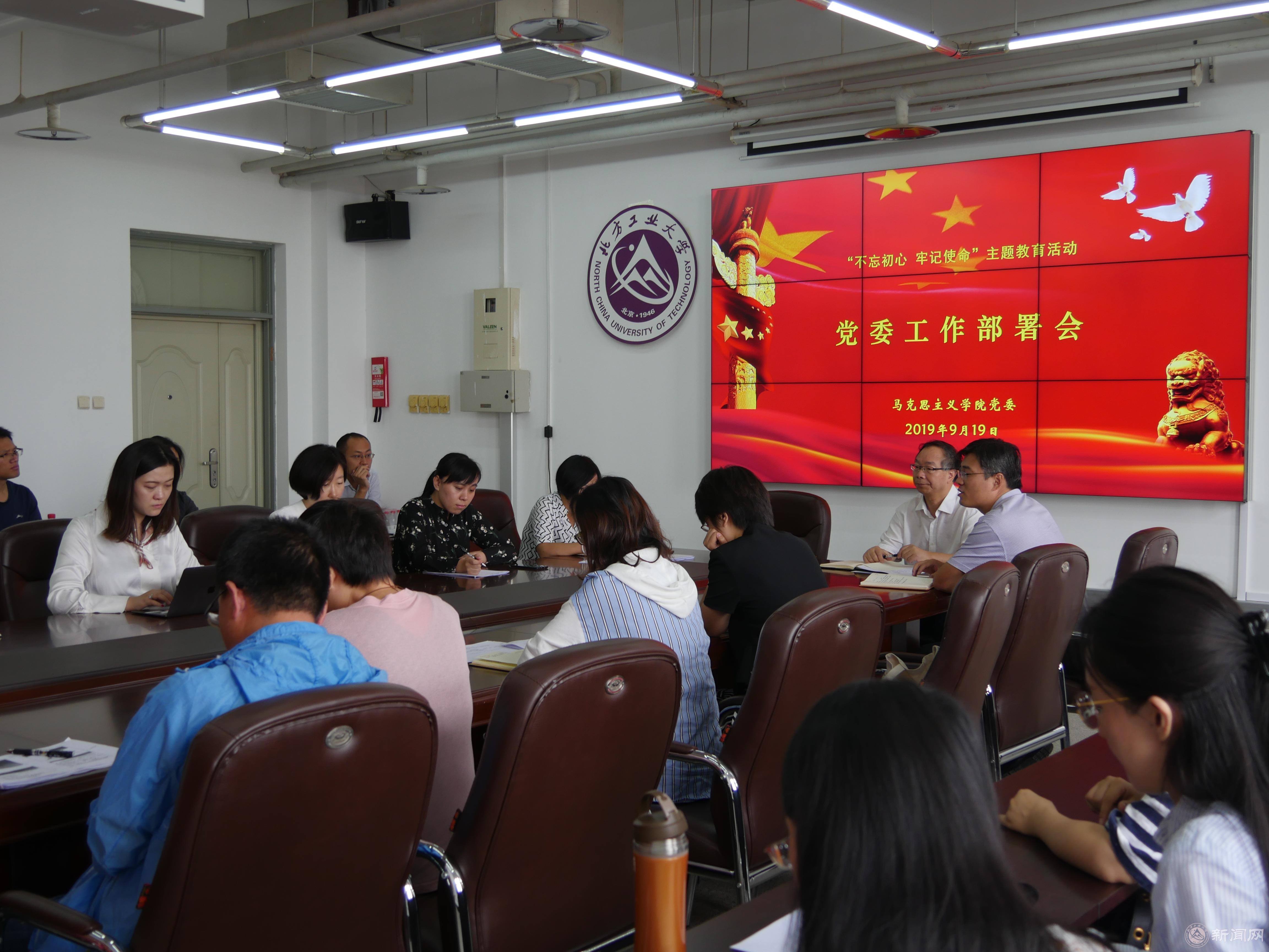 上午,学院党委召开了“不忘初心、牢记使命”主题教育工作部署会。会上,同志们认真学习了学校党委的工作部署,并结合《关于深化新时代学校思想政治理论课改革创新的若干意见》(中办发[2019]47号)《“新时代高校思想政治理论课创优行动”工作方案》(教党函[2019]90号)等关于思政课建设的最新文件精神,深入研讨了学院党委工作的基本思路与工作抓手,明确了学院党委在这次主题教育活动中的重要角色,为后续工作开展指明了方向。
