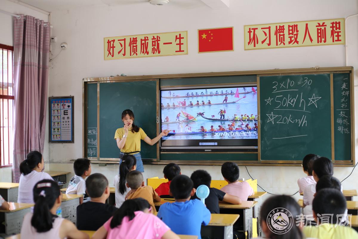 在教学初期支教大学生们发现花塘小学的孩子们缺乏对世界充分了解的途径,实践团本着“教书育人两手抓”的原则和“虽千万里吾往矣”的精神在支教过程中一直坚持言传身教,以身作则,在教孩子们文化知识的同时更在引导孩子们树立远大的志向和目标。鼓励孩子们要先走出农村,再反哺农村,以建设更好的家乡为己任,为祖国的乡村振兴建设贡献新生力量,为中华民族伟大复兴提供源源不断的动力。