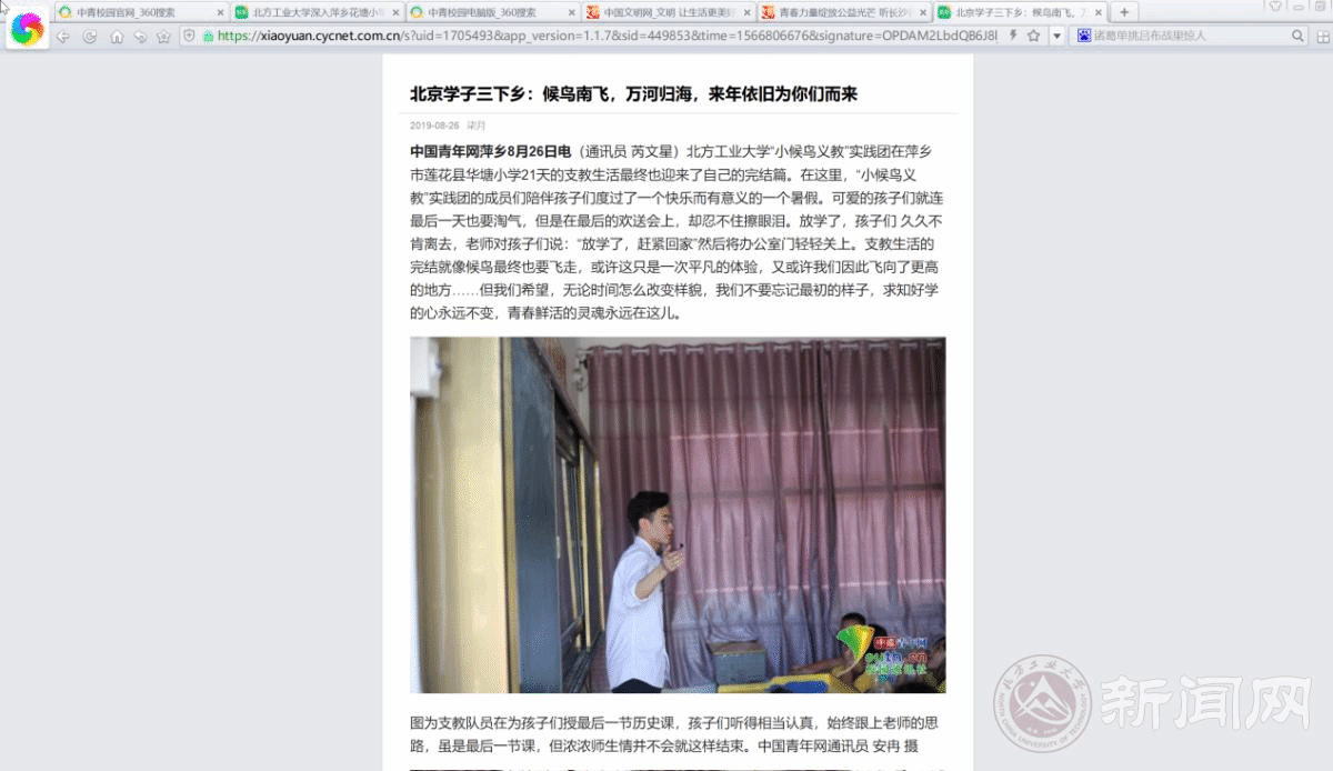 3、中青网(三下乡官网)多次报导“小候鸟”义教实践团活动