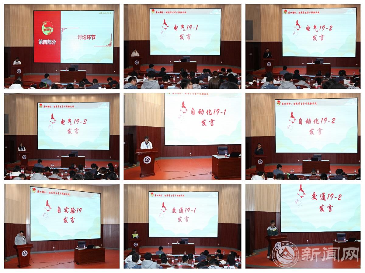 在讨论环节,与会同学就“如何看待‘玩命的中学、快乐的大学’”,“大学生合理增负”,“怎样学、为谁学”,“新时代的爱国情怀与团学”,“班级干部的责任意识”等话题展开分组讨论。经过激烈的讨论,各班代表纷纷上台就班团发展和自身学习进行了小组汇报。