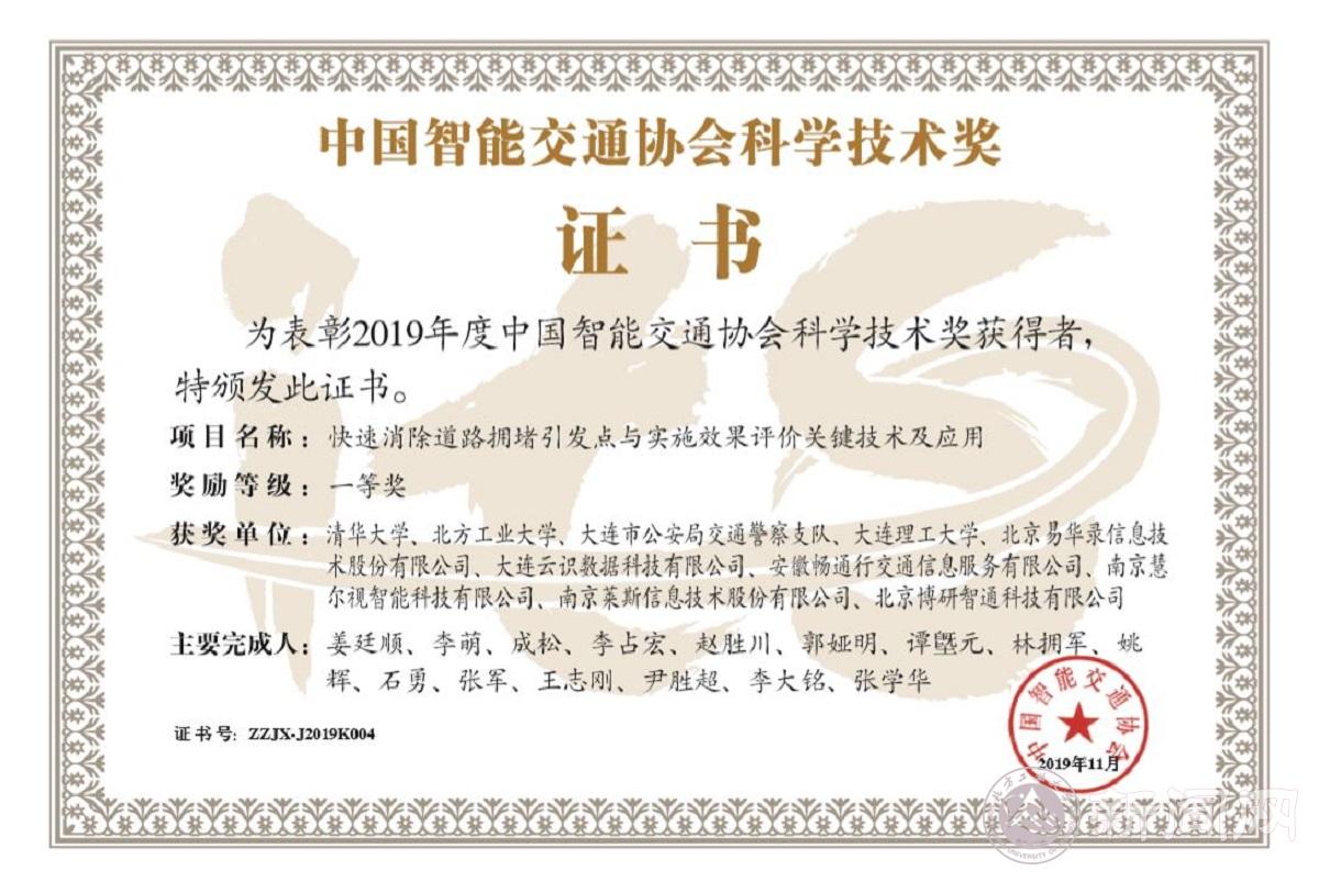 在中国智能交通年会上,颁发了2019年度中国智能交通协会科学技术奖,由世界杯智能交通团队谭塈元副教授等与清华大学、大连市公安局交通警察支队等单位共同完成的《快速消除道路拥堵引发点与实施效果评价关键技术及应用》项目荣获一等奖;吴文祥教授等与浙江工业大学、浙江浙大中控信息技术有限公司等单位共同完成的《基于交通大脑的城市广域交通管控一体化关键技术研发及应用》项目荣获二等奖。本次是世界杯第5次荣获中国智能交通协会科学技术奖,此前已荣获一等奖一项、二等奖一项、三等奖两项。