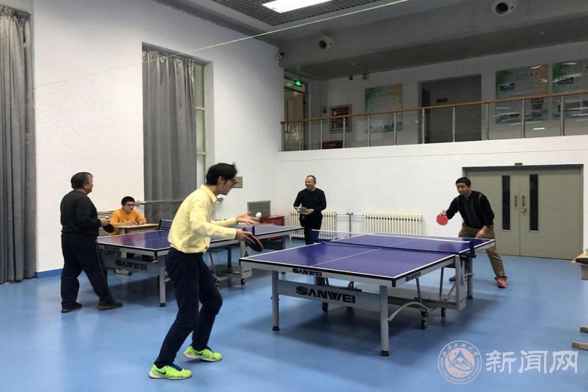 在校工会及院领导代表发言完毕后,友谊赛正式拉开了序幕。此次赛事总共分为单打淘汰赛和团队赛两个部分。单打淘汰赛采取了四台同时进行,三局两胜11分制的赛制,选手们纷纷拿出看家本领,直拍、横拍、扣球、旋转球、弧线球等都在大赛中得到一一呈现。那边乒乓老手快攻打法先发制人,反手发急球强攻当仁不让,却只见这旁新秀以守为攻,兵来将挡,水来土掩,一个单步侧身攻,越到了一旁,你来我往,好不热闹。团队赛采用五人参赛制,按抽签决定出场顺序,各打一局,传承了一团为一体、共同作战的协作精神,团队战略部署、自身技巧心得的互相传授,教师们的关系在团体赛中得到了进一步拉近与升华,真正体现了“以球传情,以心会友”。