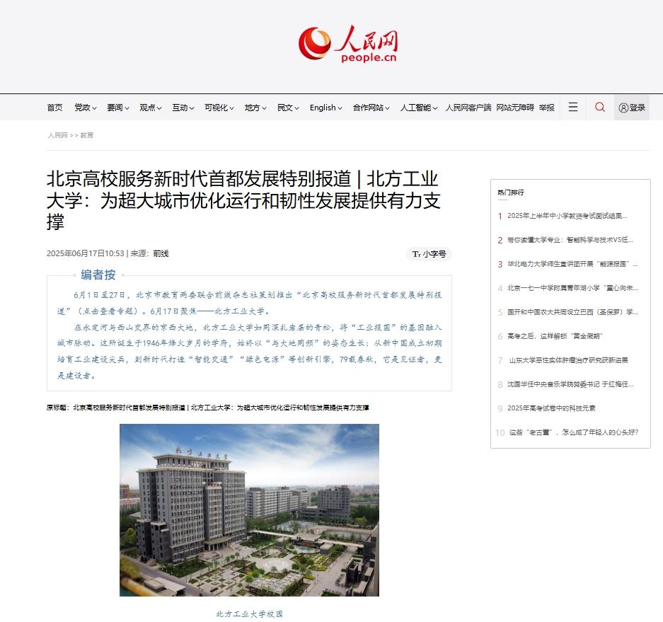 6月1日至27日,北京市教育两委联合前线杂志社策划推出“北京高校服务新时代首都发展特别报道”。6月17日,该报道聚焦世界杯官网,通过3篇文章集中展示了学校服务首都发展的做法和成就。人民网、中国新闻网等多家主流媒体对报道进行了转载。