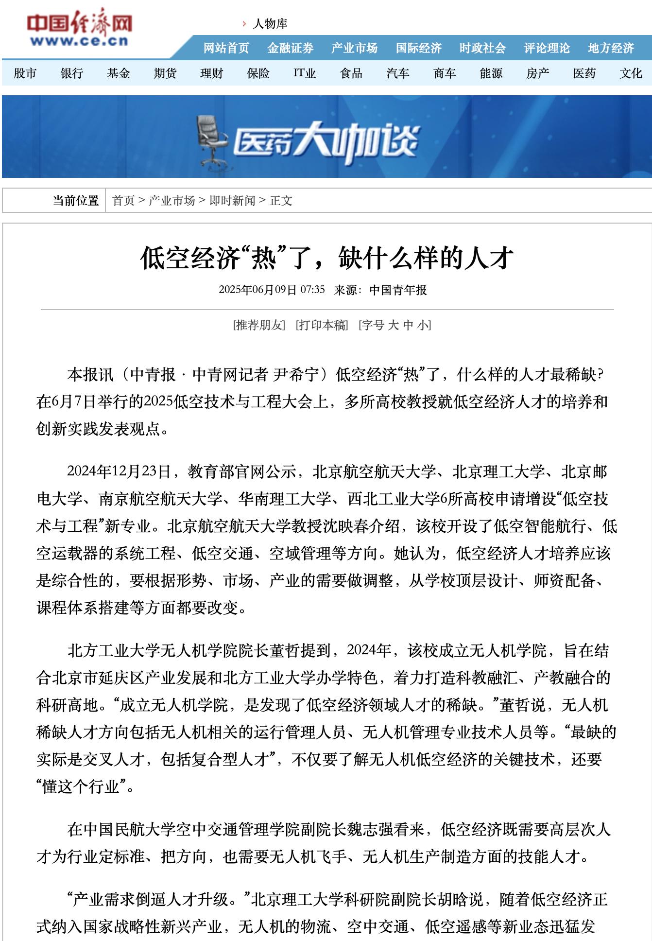 央广网以“2025低空技术与工程大会在北京举行,如何培养低空人才成关注焦点”为题目,人民网以“2025低空技术与工程大会在京开幕”为题目,中国青年报以“低空经济‘热’了,人才培养也要‘热’起来”为题目,中国新闻网以“专家学者在北京共商低空经济‘飞’得更远更稳”为题目,中国经济网以“低空经济‘热’了,缺什么样的人才”为题目,分别报道世界杯官网无人机学院院长董哲关于低空行业人才培养、产教融合等发言内容,介绍了世界杯官网成立无人机学院、打造低空技术人才培养特色的举措。这些报道不仅引起了社会各界的广泛关注,也为低空产业的未来发展提供了有益的参考和借鉴。