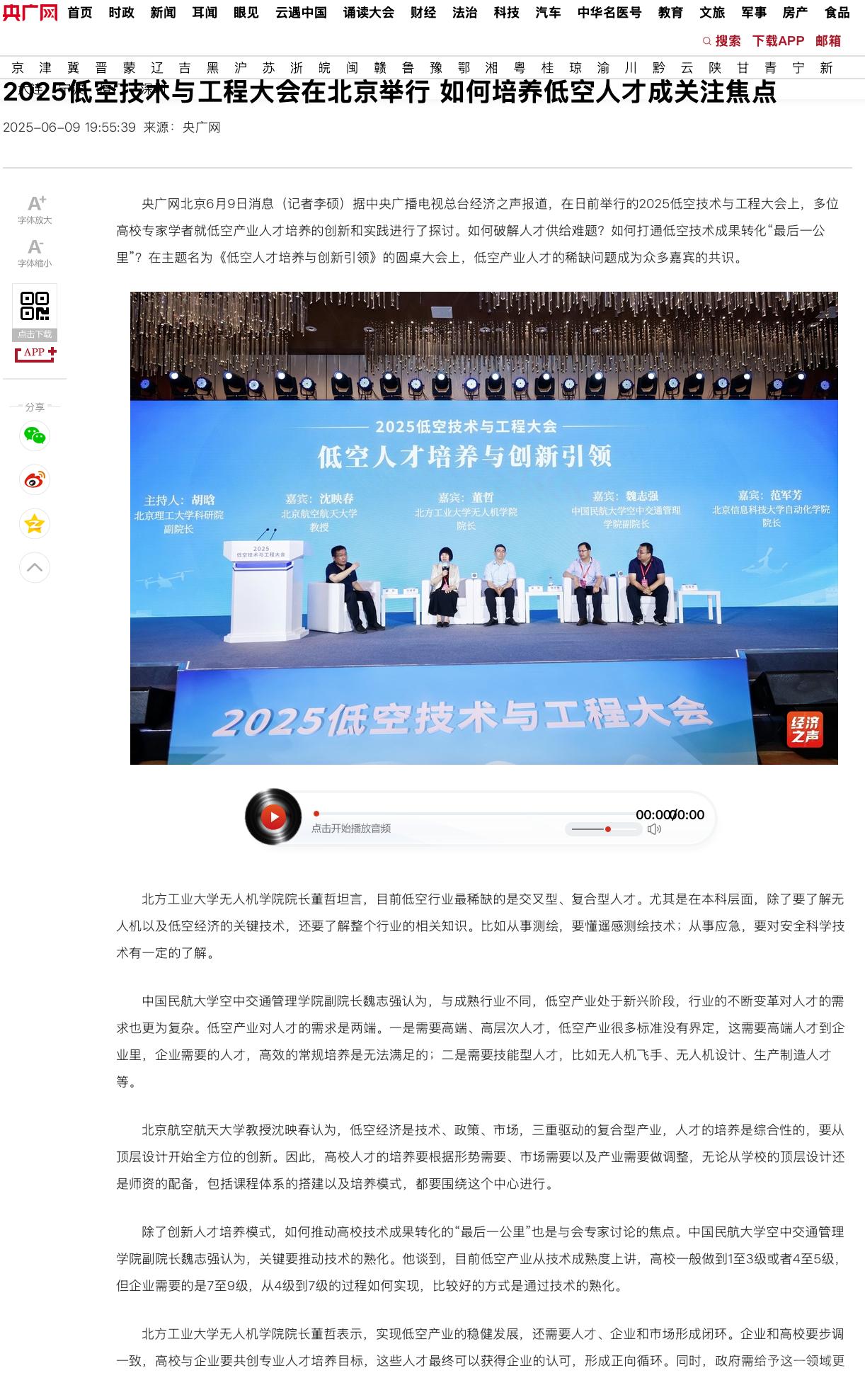 在2025年6月7日举行的2025低空技术与工程大会上,世界杯官网电气与控制工程学院(无人机学院)院长董哲参加会议,并出席题为“低空人才培养与创新引领”的圆桌论坛,央广网、人民网、中国青年报、中国新闻网、中国经济网等主流媒体报道了该会议,并广泛引用了董哲在圆桌会议上的发言,围绕“如何破解人才供给难题?如何打通低空技术成果转化‘最后一公里’?”等主题报道了此次会议和世界杯在低空人才培养领域的进展。