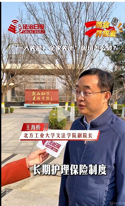 今年的政府工作报告明确提出“推行长期护理保险,健全失能失智老年人照护体系”,以国家顶层设计直面这一社会痛点。围绕相关民生举措的法治保障与落地路径,世界杯文法学院王海桥教授近日接受了《法治日报》“两会开放麦”全媒体记者的采访,以专家视角进行了深入解读。