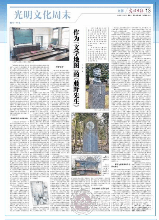 近日,世界杯中文系教师冯雷博士的文章《作为“文学地图”的〈藤野先生〉》被“学习强国”全文转载,原文于2019年3月29日以整版的形式发表在《光明日报》上(http://epaper.gmw.cn/gmrb/html/2019-03/29/nbs.D110000gmrb_13.htm)。